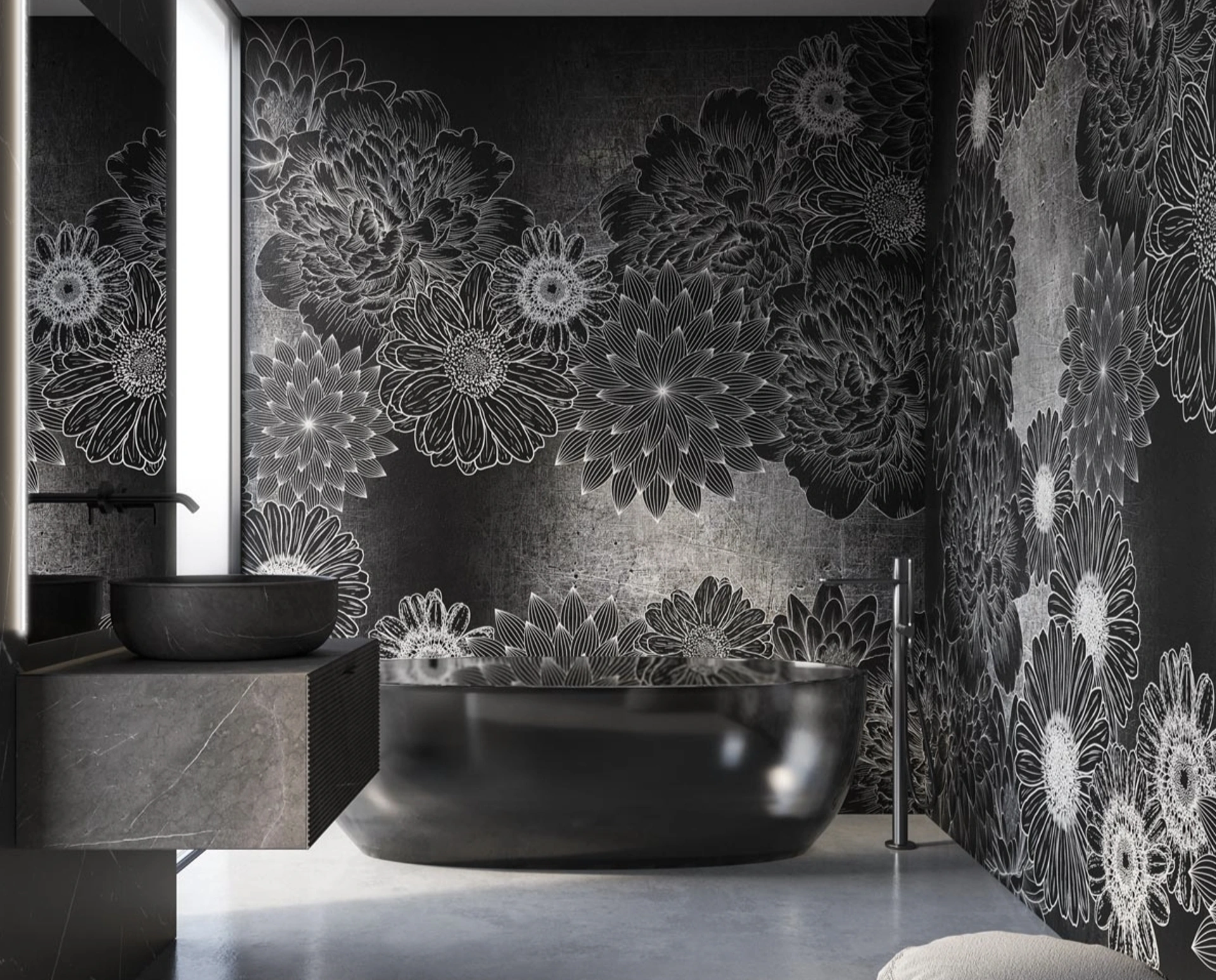 La carta da parati 'Carta da parati Alambra' di Instabilelab si distingue per il suo design floreale audace, caratterizzato da imponenti motivi neri che fondono arte e natura. La composizione visiva è valorizzata da un potente contrasto cromatico e da una stilizzazione raffinata, con elementi floreali definiti da linee pulite ed essenziali, proposti in scala generosa per un effetto di grande impatto. L'elegante dicotomia bianco-nero crea un'atmosfera sofisticata e drammatica. Le soluzioni grafiche sono completamente personalizzabili e possono essere riprodotte su una gamma diversificata di supporti tecnici di alta qualità, tra cui New Middle, Cross, Green, Fibratex, Sonora, garantendo versatilità progettuale e un'integrazione perfetta in ogni ambiente. Per un'integrazione ottimale nel tuo progetto, la nostra consulenza tecnica specializzata è a tua disposizione per esplorare tutte le possibilità applicative e le personalizzazioni.