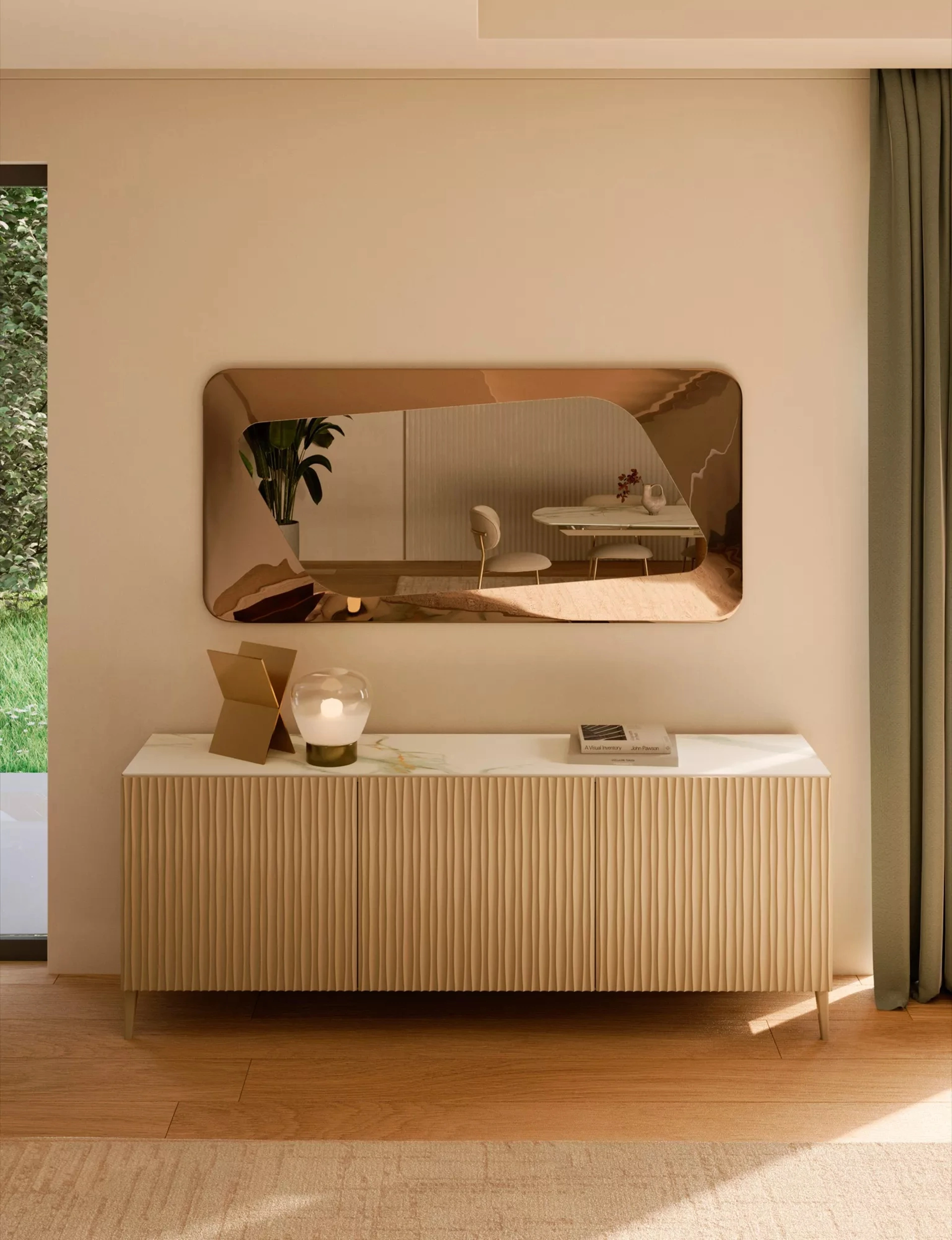 Complementi design e specchi senza cornice: ottieni informazioni sul modello Specchio Focus di Bontempi e potrai completare i tuoi interni.