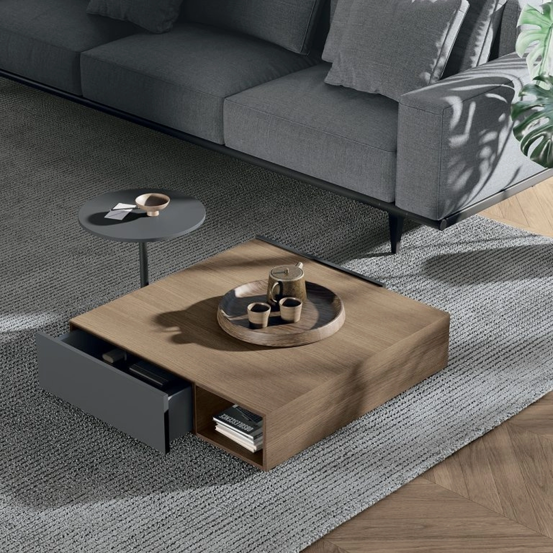 Il tavolino Theo di Tomasella si distingue per la sua estetica pulita e la funzionalità avanzata, integrando sapientemente design e praticità. Realizzato con materico rovere cognac e cassetti laccato opaco marna 180, offre una struttura robusta e raffinata. La sua configurazione include un cassetto capiente e un vano laterale aperto, ideali per ottimizzare lo spazio e mantenere l'ordine, rendendo gli oggetti essenziali sempre accessibili. Questa soluzione d'arredo è pensata per integrarsi con armonia in ambienti moderni, offrendo una base d'appoggio versatile e un contenitore discreto. La scelta di materiali di alta qualità e una progettazione attenta assicurano una lunga durabilità e un'estetica che si mantiene inalterata nel tempo, garantendo un investimento solido per l'arredo.