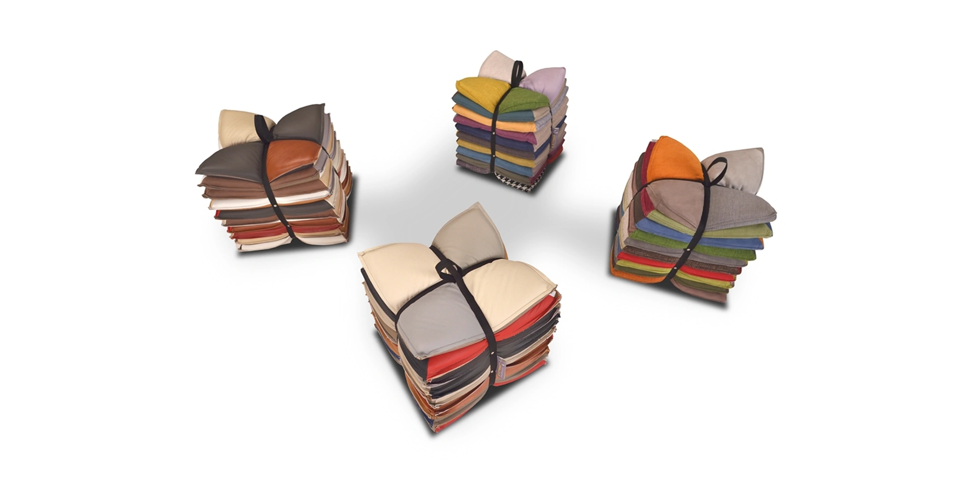 Desideri completare i tuoi spazi con i Complementi Calia? Ecco qui differenti modelli di pouf in tessuto come U Strozz.