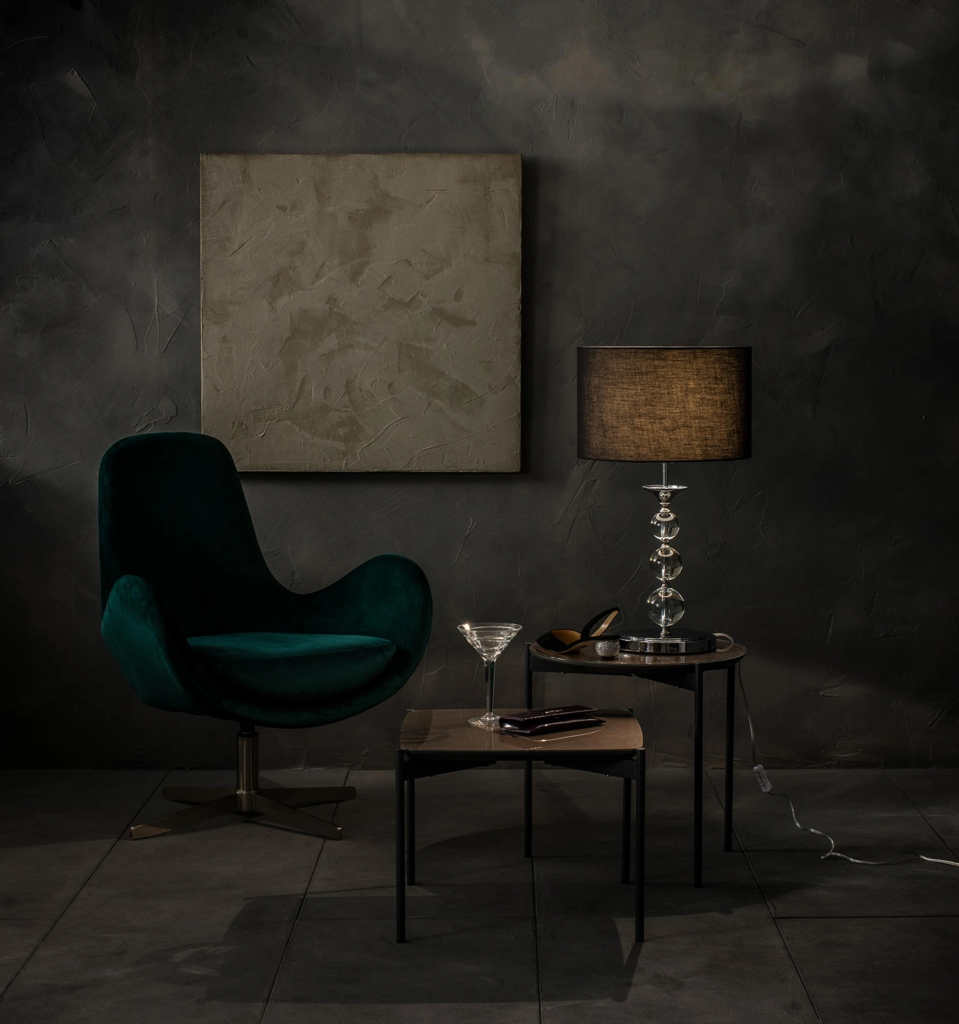 | Colore: | Paralume: nero; Struttura: trasparente; Base: grigio cromo |