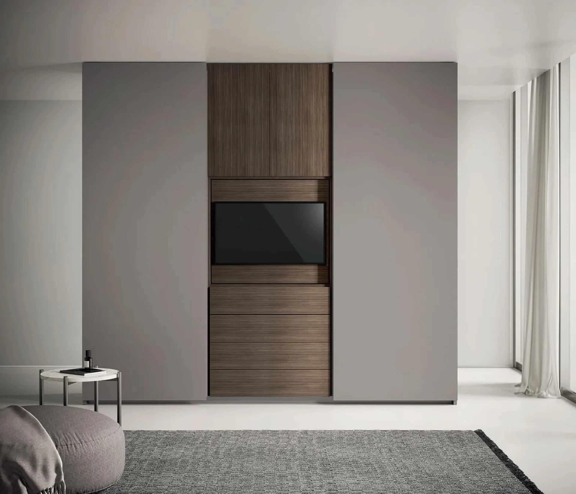 Gli armadi scorrevoli come il Plana ottimizzano lo spazio, specialmente in ambienti stretti, grazie all'apertura delle ante che non richiede ingombro esterno. Offrono un design moderno e funzionale, ideale per diverse configurazioni.