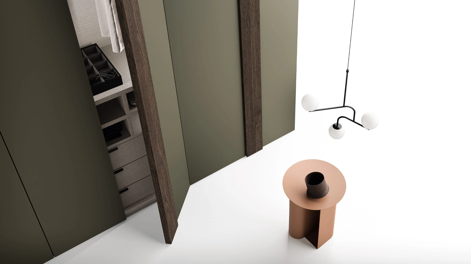 L'armadio Anta Double Battente di SantaLucia incarna un design minimalista e funzionale, ideale per ottimizzare gli spazi. La sua struttura è caratterizzata da ante a battente e la possibilità di personalizzare le fasce verticali con diverse finiture di pregio, tra cui essenze (es. matwood white, matwood grey, matwood honey, matwood coffee, matwood dark), colori eco (es. eco bianco, eco avorio, eco limo, eco pepe, eco marna), materici, impiallacciati, laccati, laccati metallizzati (es. champagne metallizzato, titanio metallizzato), ecopelli, interno. Il sistema di apertura è progettato per la massima praticità, integrando dettagli in essenza che ne esaltano l'estetica. Internamente, offre soluzioni organizzative avanzate, inclusi ripiani in vetro e un portascarpe estraibile con finitura Titanio, garantendo un'organizzazione impeccabile. Questo modello si integra perfettamente nella collezione Homy, offrendo versatilità e stile. La struttura è concepita per una lunga durata e per garantire la massima efficienza nel tempo, con possibilità di integrazione futura.