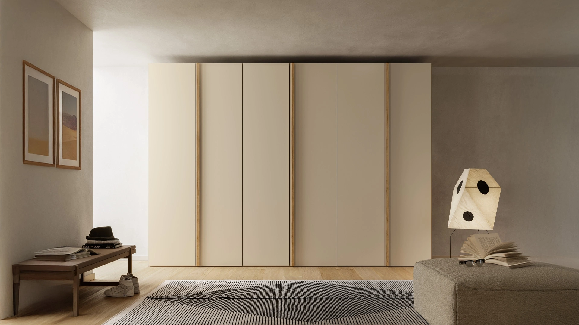 L'armadio Liscia Pratico Battente 01 è caratterizzato da ante battenti, ideali per chi cerca una soluzione pratica e funzionale. Le ante sono disponibili in diverse finiture.