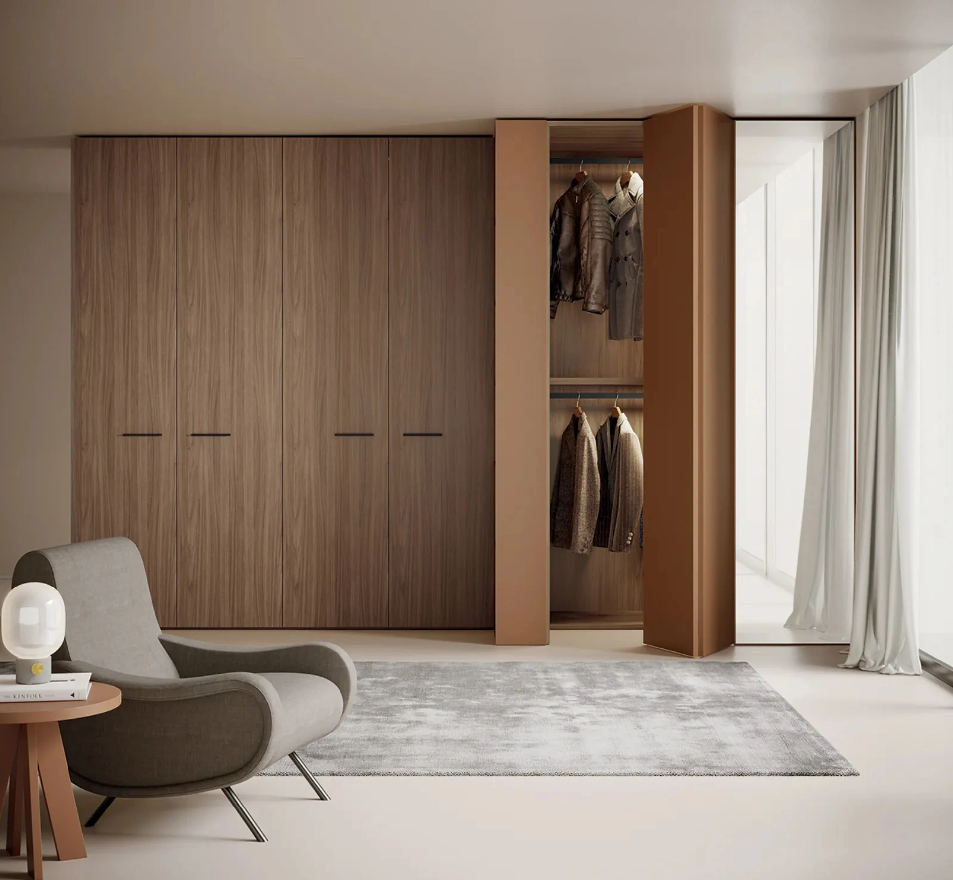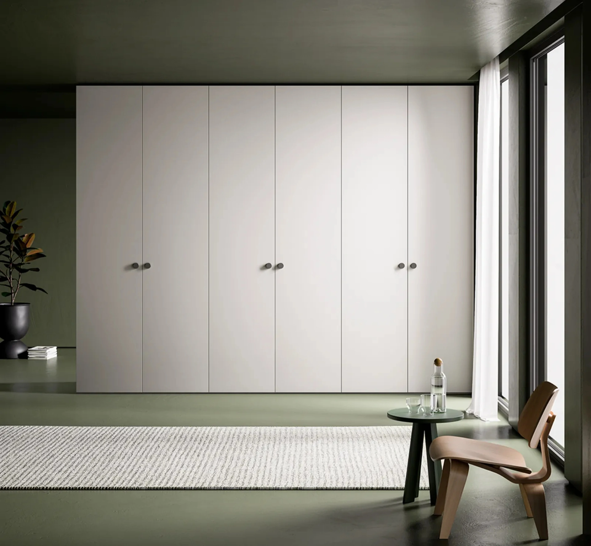L'armadio Plana si distingue per le sue ante battenti, che garantiscono un'apertura completa e un facile accesso all'interno. Questo design classico è ideale per ottimizzare lo spazio e la funzionalità in ogni ambiente.