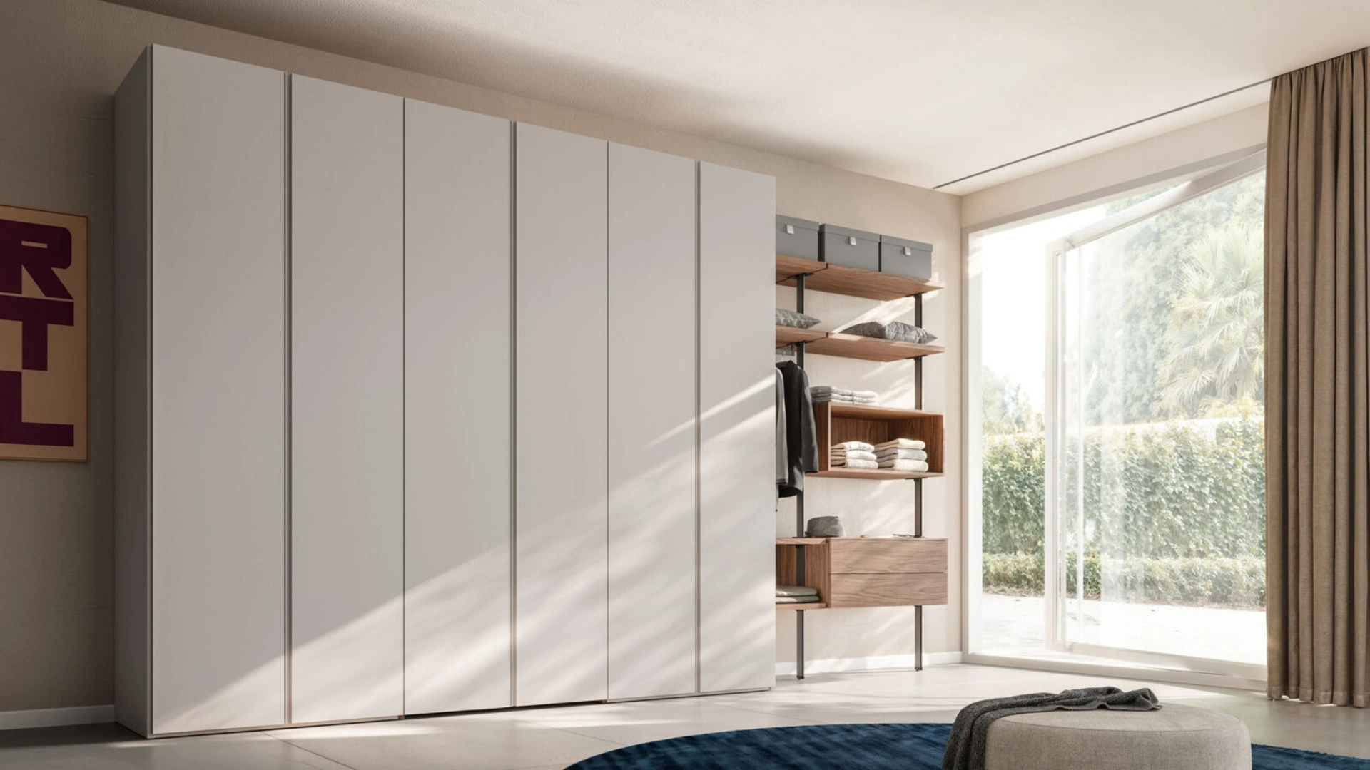 Se desideri una zona notte ben arredata, scegli l'armadio Tratto + cabina Pole 30 con ante battenti di Orme!