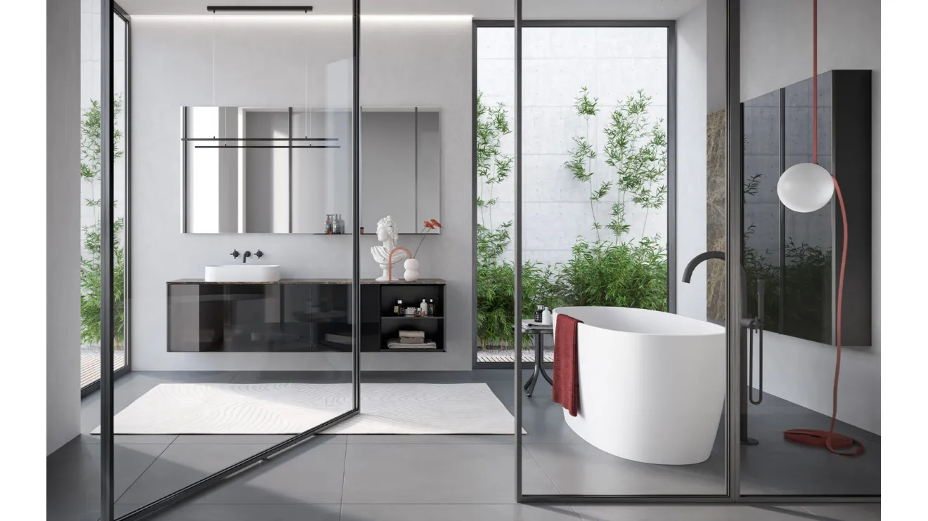 Ottieni informazioni sull'arredo bagno moderno: mobili bagno sospesi in vetro come il modello Airy Sistema 07 di RCR ti attendono.