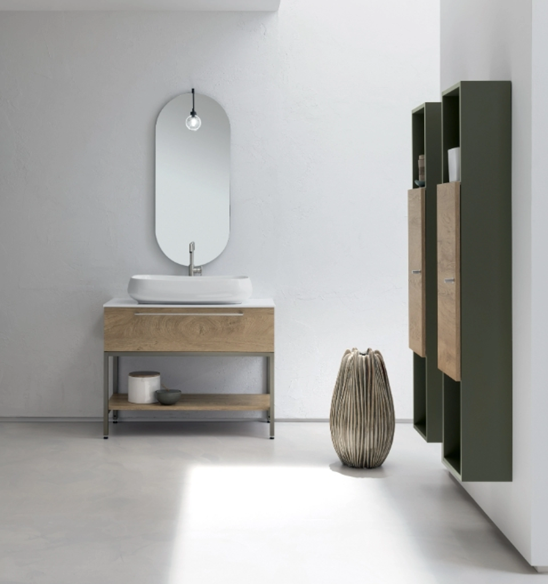 | Materiale: | Nobilitato Kiki 276, Laccato opaco 900 (M2 cactus), Ceramica (lavabo), Mineralguss (piano) |