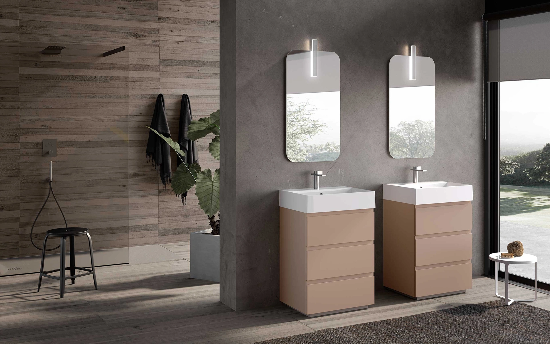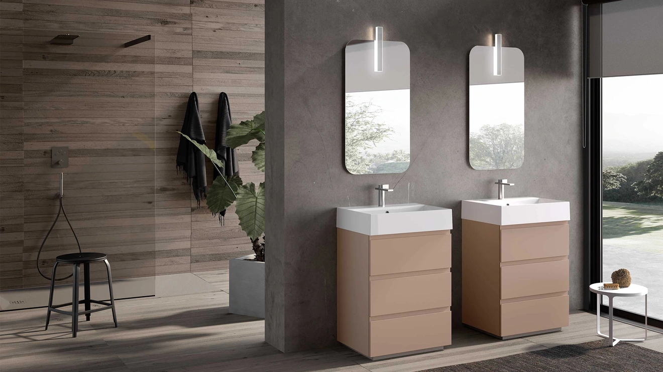 mobili bagno a terra Block System Tube C26 di Baxar: scopri l'Arredo Bagno in laccato opaco moderno e arreda la stanza del benessere.