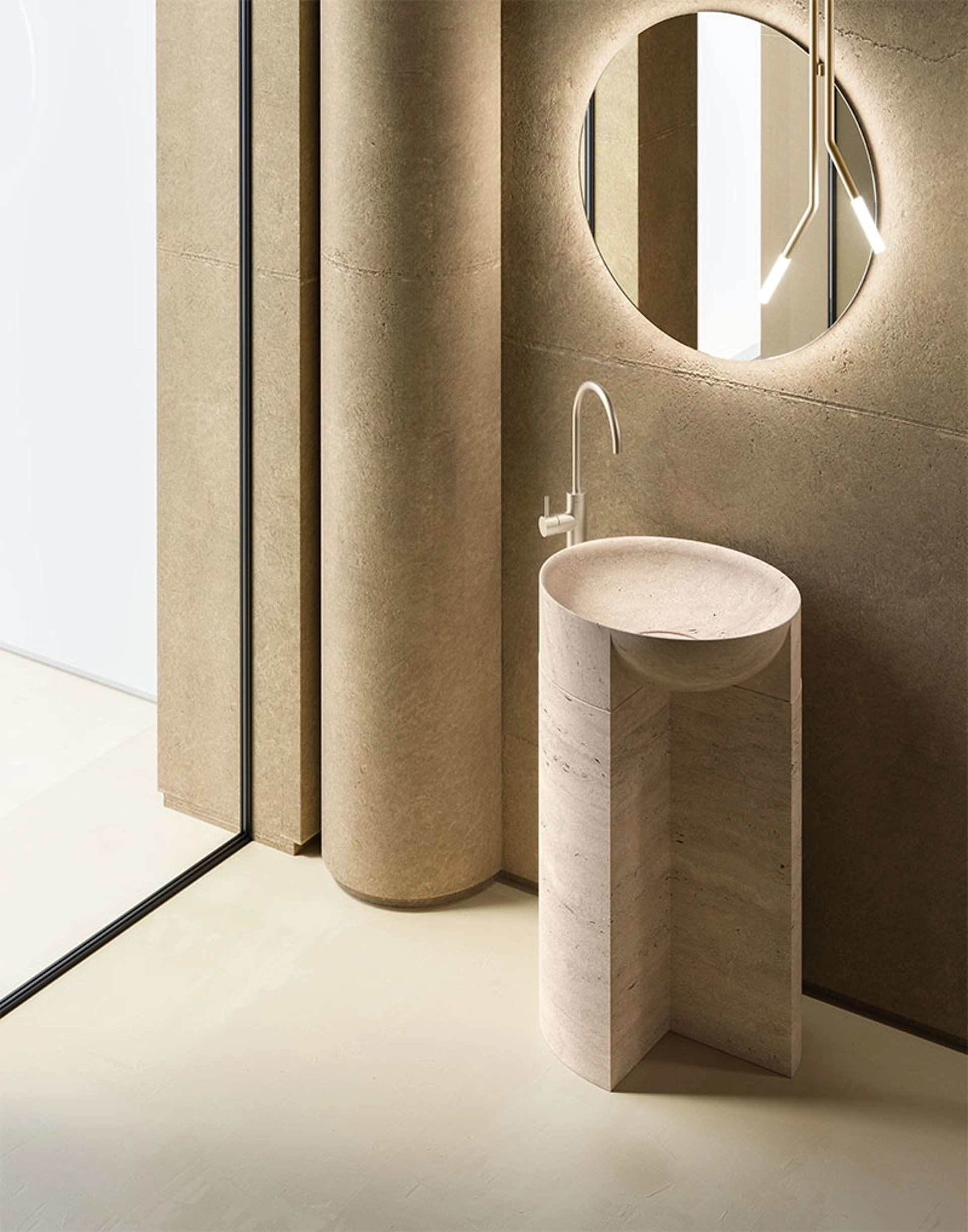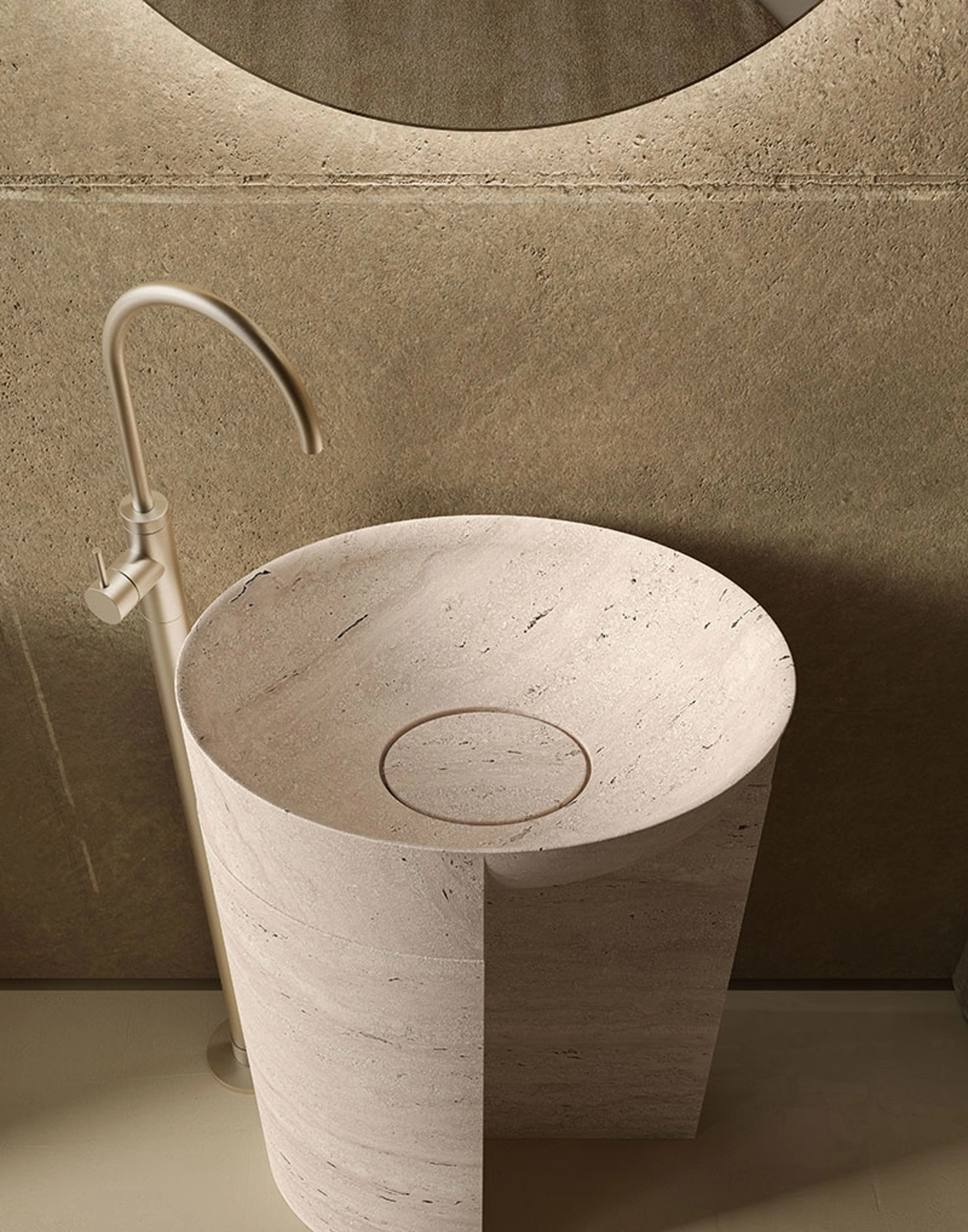 sanitari in resina minerale del marchio Cerasa: clicca e scopri l'arredo bagno design Des Evolution Caramel 01 per la stanza del benessere.