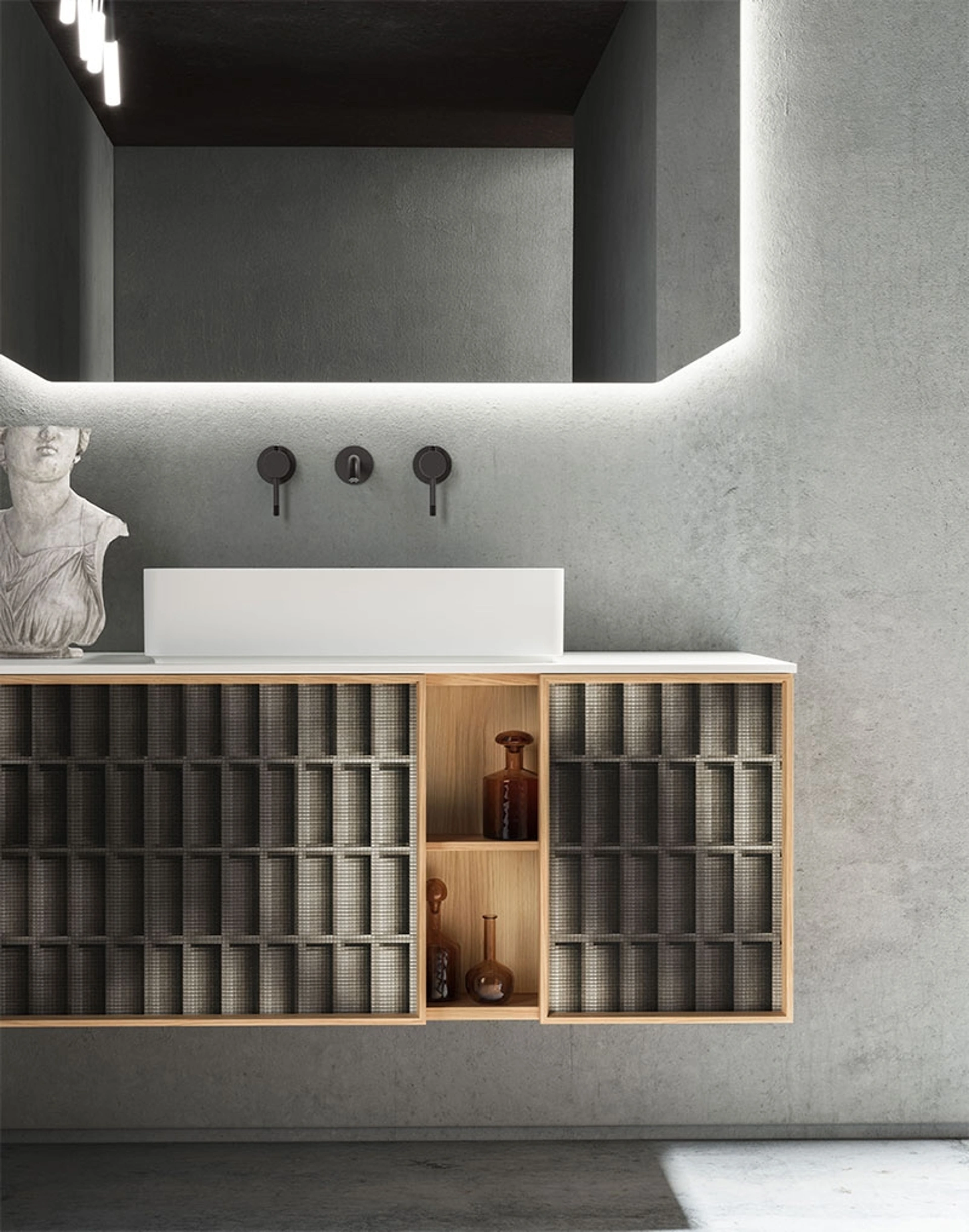 Arreda il tuo bagno design ottimamente con Des Evolution Natural 01, mobili bagno sospesi e complementi in legno di Cerasa.
