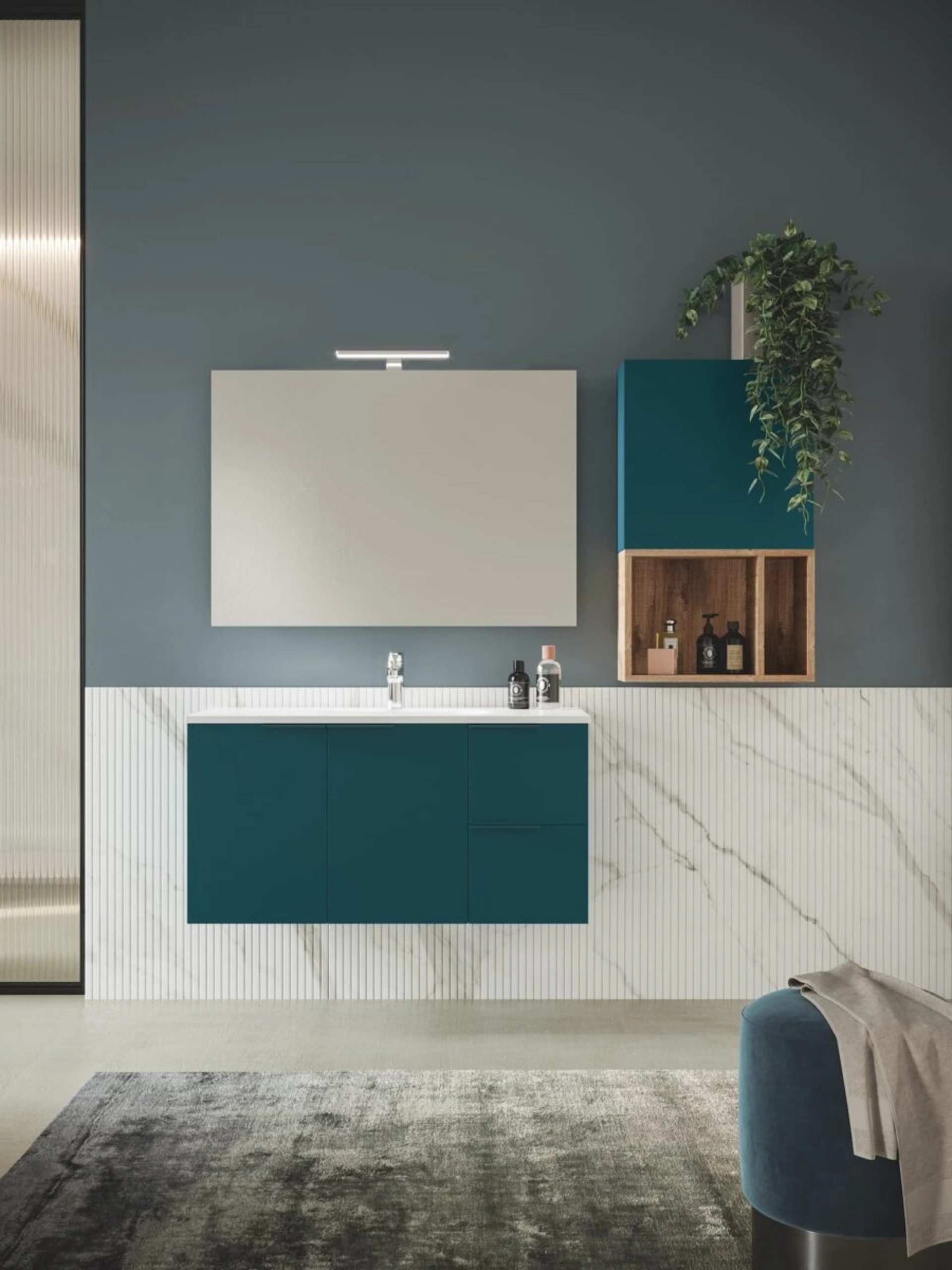 mobili bagno sospesi Fast 09 di RCR: scopri l'Arredo Bagno in laccato opaco moderno e arreda la stanza del benessere.