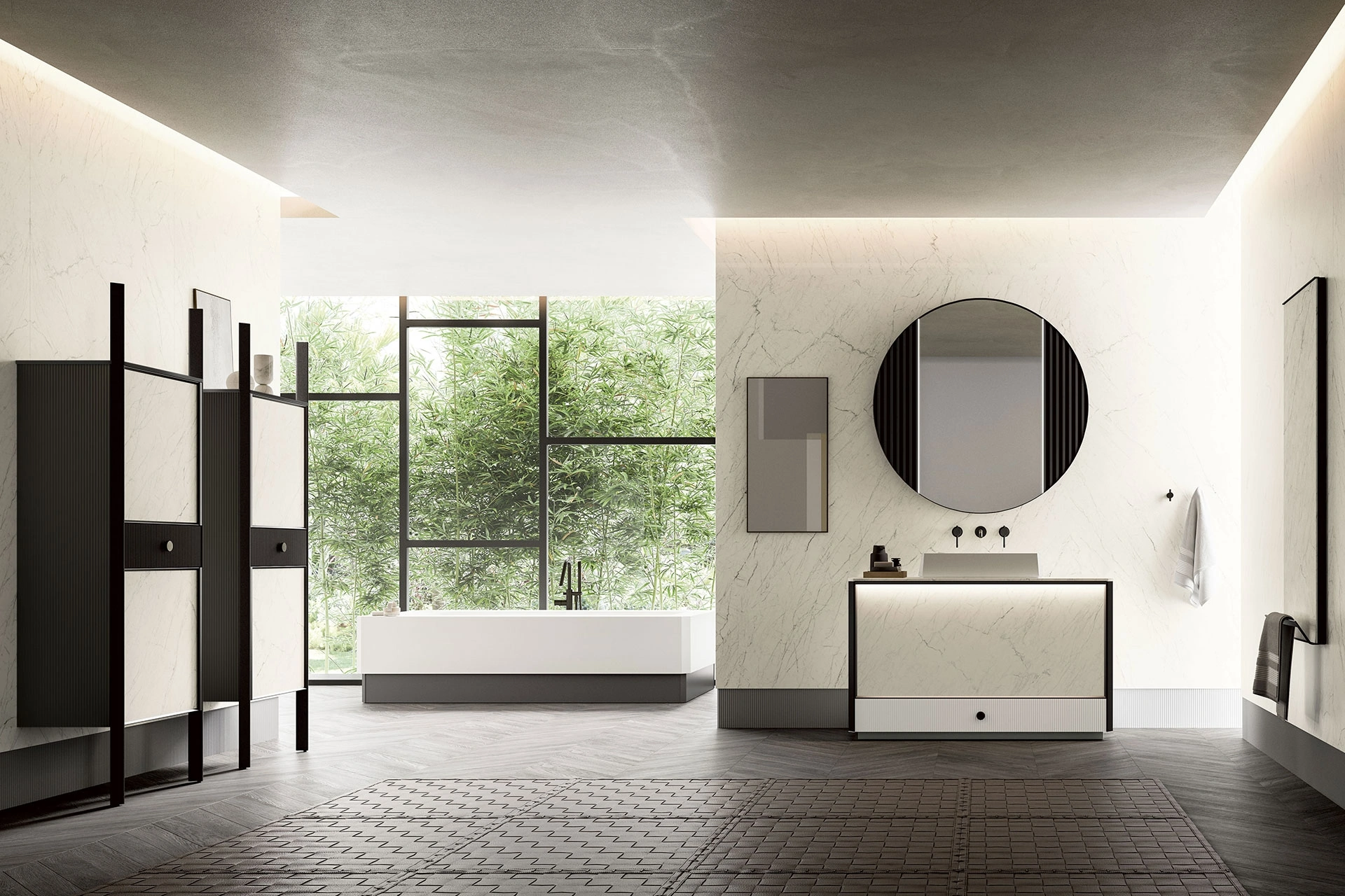 Gradevole e funzionale in ogni stanza da bagno, un modello in ceramica design come quello nell'immagine risolverà le tue esigenze abitative di ogni tipo. Cerasa produce proposte per l’Arredo Bagno design con mobili bagno sospesi che coniugano design unico e funzionalità, come questo interno richiede. In showroom potrai toccare con mano le più originali composizioni del noto e conosciuto marchio: ti aspettiamo per arredare insieme il tuo bagno. Il modello Mobile da Bagno Honey 00 in Laminam Statuarietto di Cerasa in ceramica fa parte della ricca collezione di mobili per il bagno della firma, sempre di grande valore estetico. Con le proposte che presentiamo ti garantirai mobili fatti bene e di design anche per il bagno, che va progettato con cura, con praticità e design.