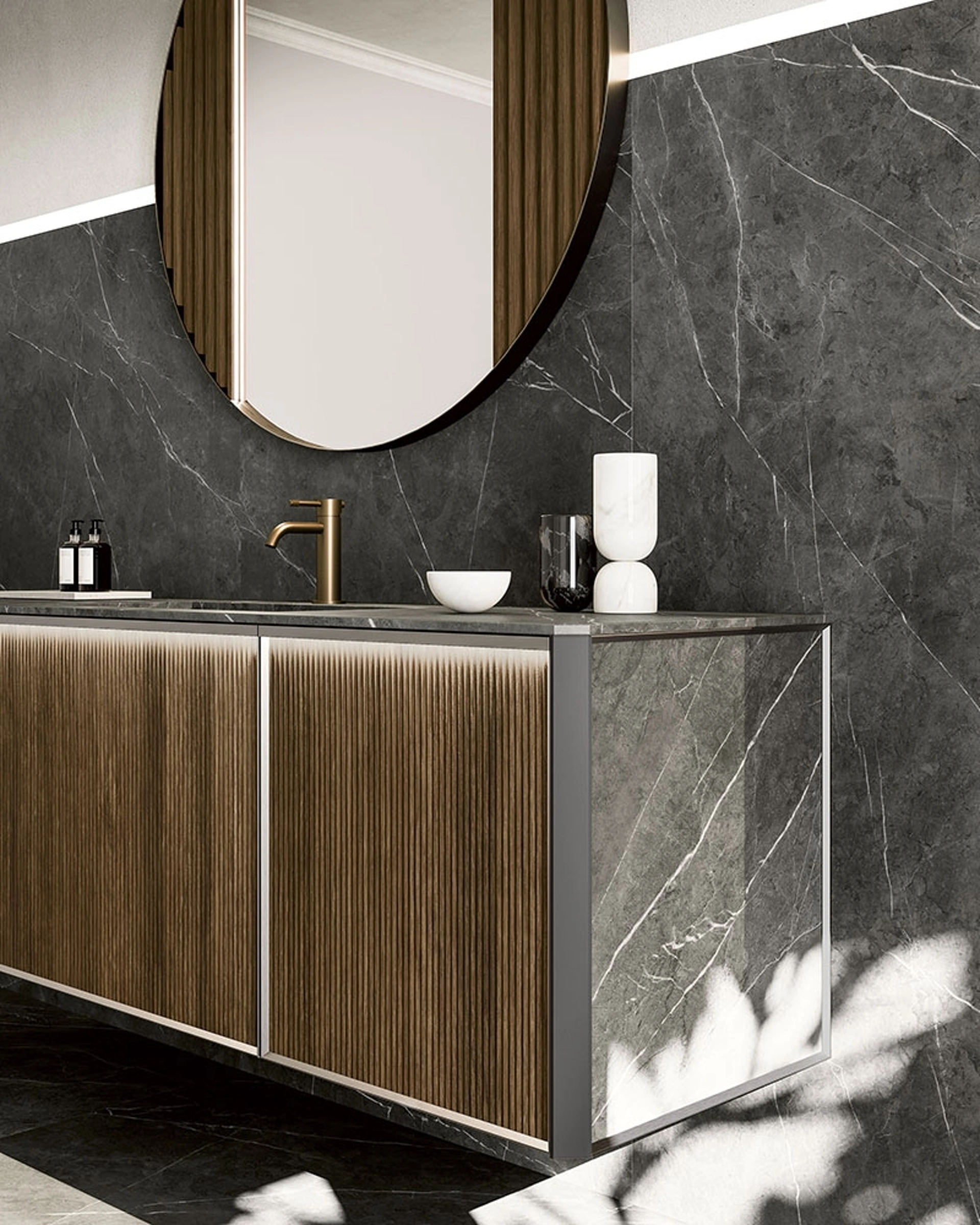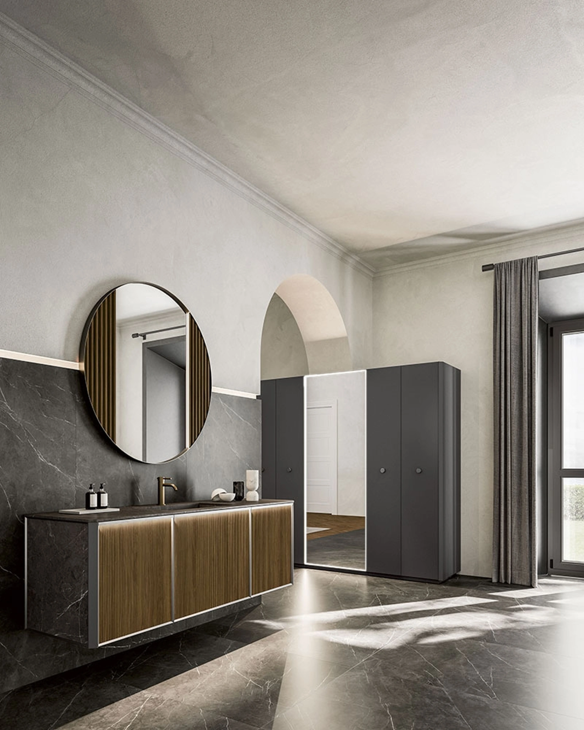 Arreda la stanza del benessere design perfettamente con Honey 03, mobili bagno sospesi e complementi in legno di Cerasa.