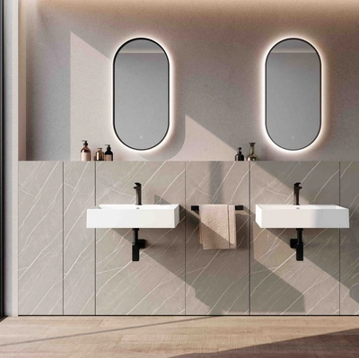 Arreda la stanza del benessere moderno ottimamente con M2 System 245, mobili bagno a terra e accessori in melaminico di Baxar.