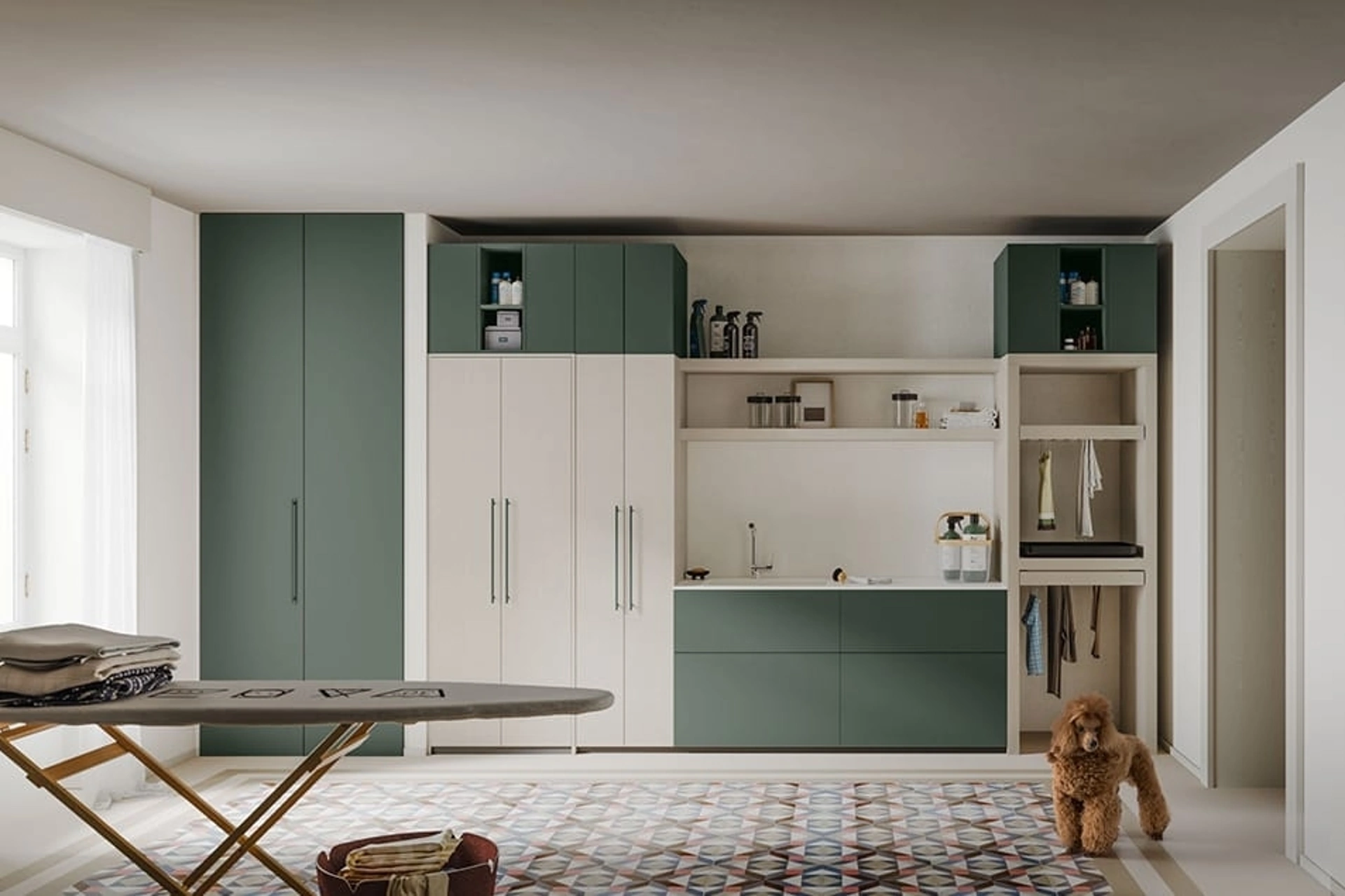 Arreda il tuo bagno moderno al meglio con Regola 03, mobili bagno per lavanderia e oggetti in melaminico di Cerasa.
