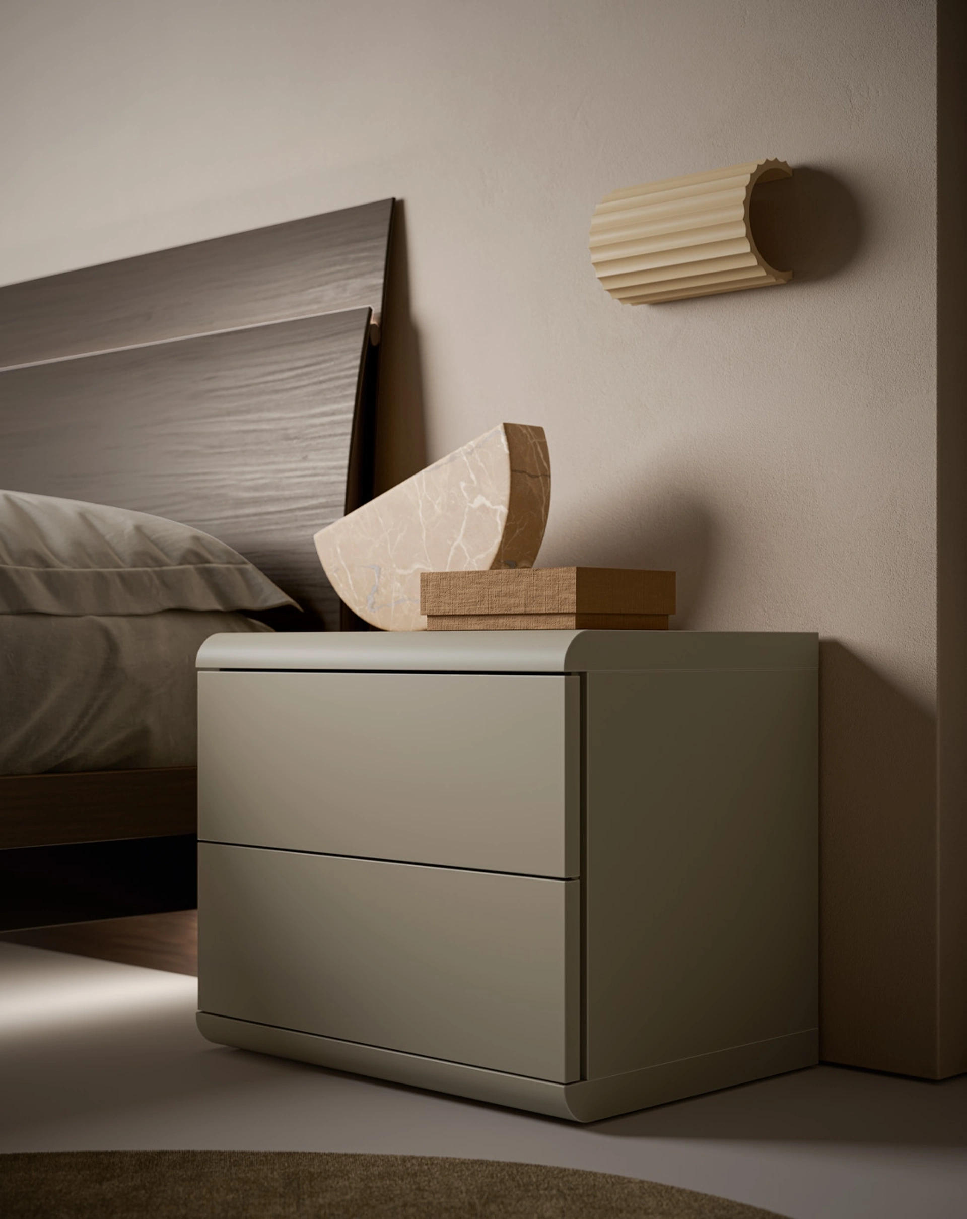 Il comodino Agata, elemento integrante della serie Homy, si distingue per la sua architettura solida, caratterizzata da un top e una base di notevole spessore, sapientemente rifiniti con angoli morbidamente arrotondati. Questo mobile contenitore è concepito per offrire massima personalizzazione, essendo disponibile in una ricca palette di finiture: dalle calde essenze lignee ai moderni materici, dai raffinati laccati opachi ai laccati metallizzati di tendenza, come le varianti Champagne e Titanio. La cura nella scelta dei materiali e l'attenzione ai dettagli costruttivi assicurano un'elevata durabilità e un'integrazione versatile in qualsiasi ambiente, riflettendo la capacità del brand di fornire soluzioni di design personalizzabili e di lunga durata.