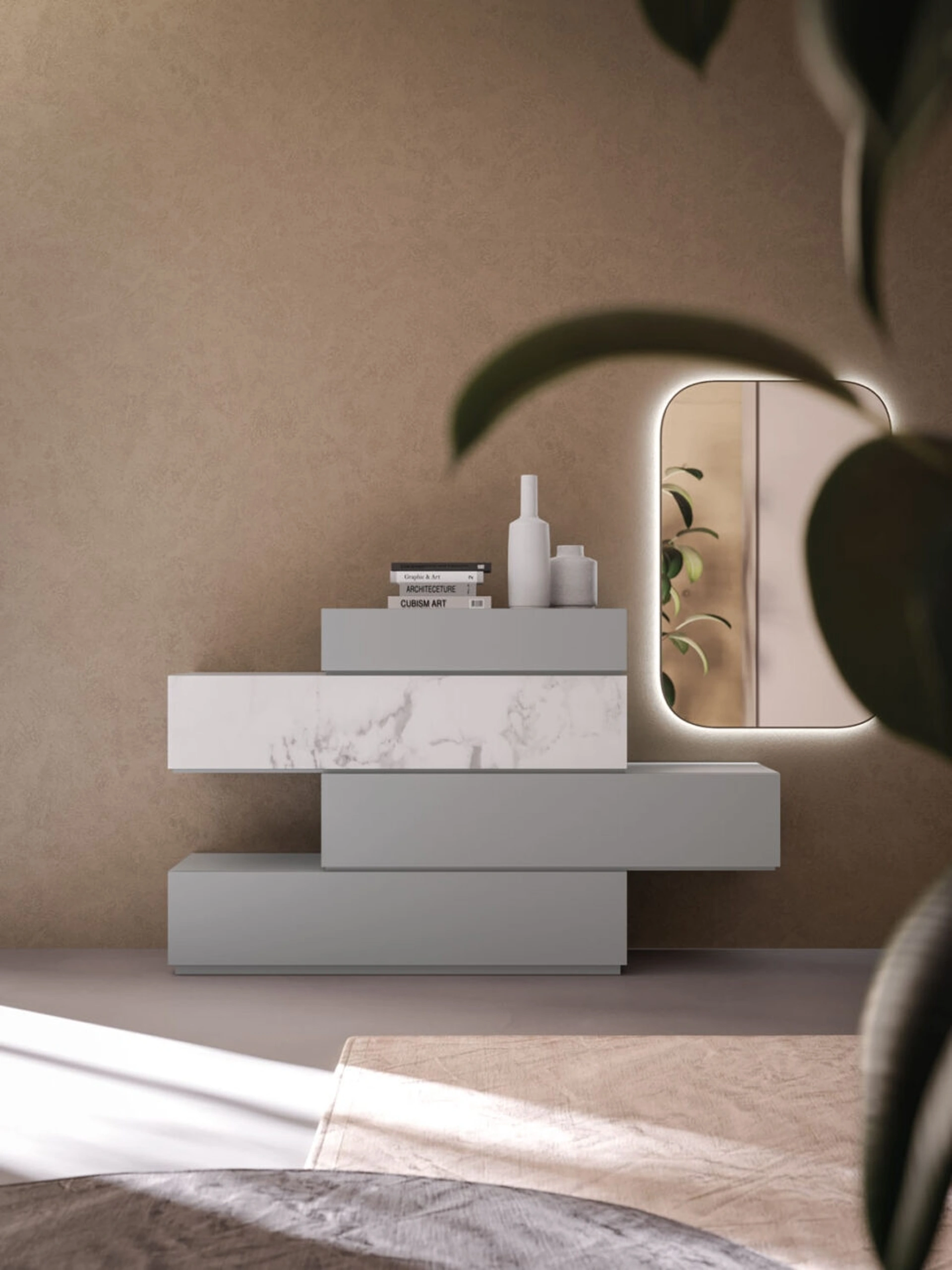 Se desideri sapere di più sul modello Comò Soul Asimmetrico, clicca e scopri i Comodini e comò Orme ideali per la tua zona notte.