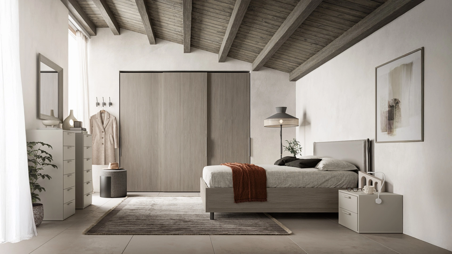 Il Gruppo Kros Gruppo Notte di SantaLucia si distingue per un'estetica contemporanea e una progettazione orientata alla massima funzionalità. Questa collezione per la zona notte integra elementi come comò, settimanali e comodini, tutti impreziositi da una maniglia rettangolare che ne enfatizza il design essenziale. Ogni pezzo è studiato per ottimizzare lo spazio contenitivo, ideale per organizzare biancheria e accessori, e può servire come pratica superficie d'appoggio. La versatilità è garantita dalla disponibilità in molteplici finiture, tra cui Disponibile in diverse finiture e colori. Essenze: Matwood White, Matwood Silk, Matwood Grey, Matwood Honey. Colori Eco: Eco Bianco, Eco Avorio, Eco Limo, Eco Pepe, Eco Muschio, Eco Corallo. Materia: Clay Light, Clay Dark.. Alcuni comodini offrono l'opzione di una lampada snodabile integrata, migliorando l'usabilità per la lettura. Questa offerta si inserisce nella 'Pratico collection', evidenziando soluzioni intelligenti per l'arredo moderno. Questo prodotto rappresenta una sintesi ottimale tra estetica funzionale e selezione rigorosa dei componenti, garantendo prestazioni elevate.