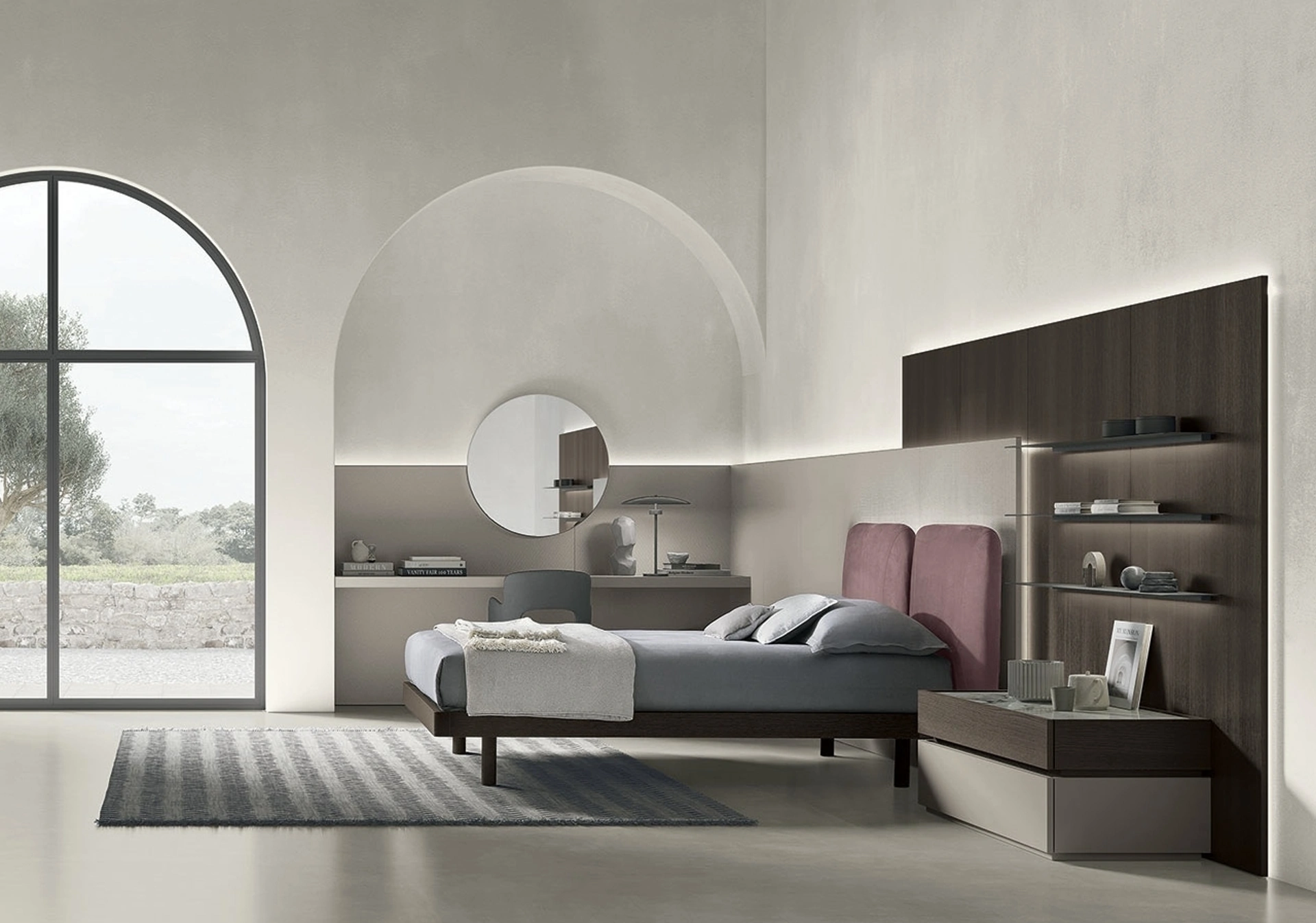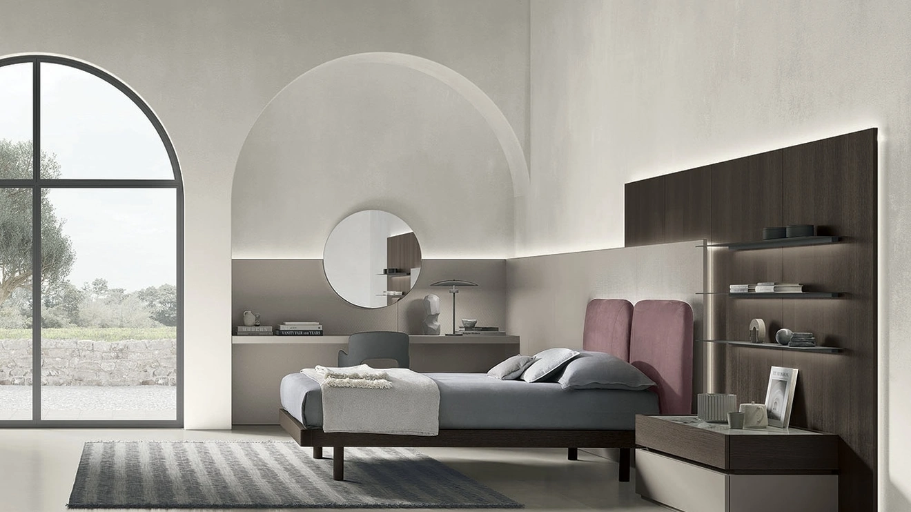 Il Letto Elliot di Tomasella rappresenta una fusione di design contemporaneo e ingegneria dei materiali. La sua struttura è offerta in finiture materiche come il rovere moka o diverse laccature, permettendo un'ampia personalizzazione. La testiera, dal design avvolgente e volumi morbidi, è rivestibile con materiali pregiati quali pelle nabuk, tessuti o ecopelle, garantendo comfort e un'estetica raffinata. Questo modello è concepito per ottimizzare l'ambiente notte attraverso un sapiente contrasto tra superfici robuste e texture soffici. È disponibile per diverse configurazioni di rete, incluse misure standard come 160x200 cm, e offre varianti di ring, anche con meccanismi contenitore integrati per massimizzare lo spazio. La progettazione del Letto Elliot è improntata alla durabilità e alla funzionalità a lungo termine, garantendo un'esperienza d'uso superiore.