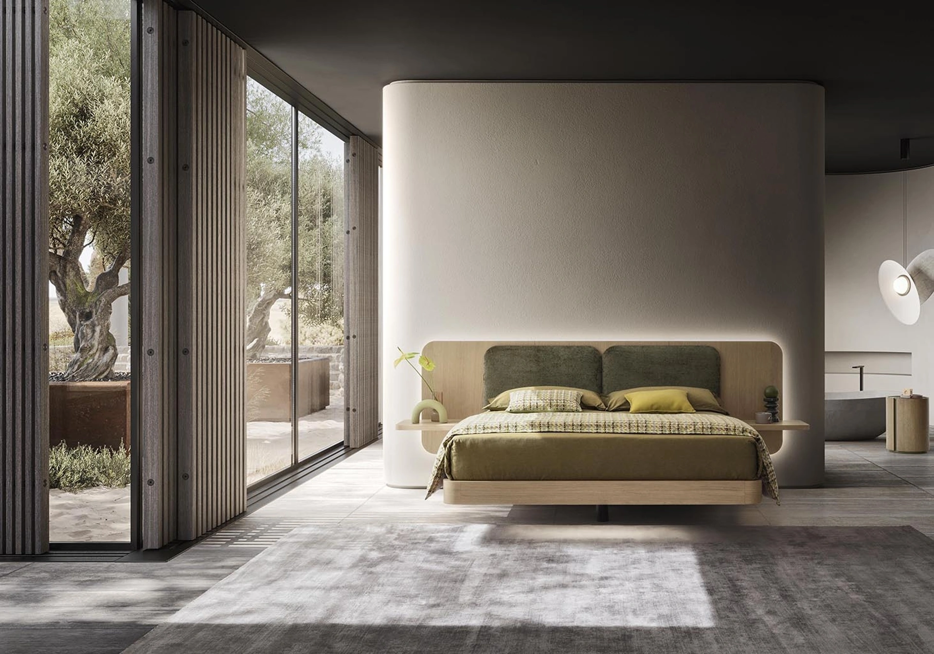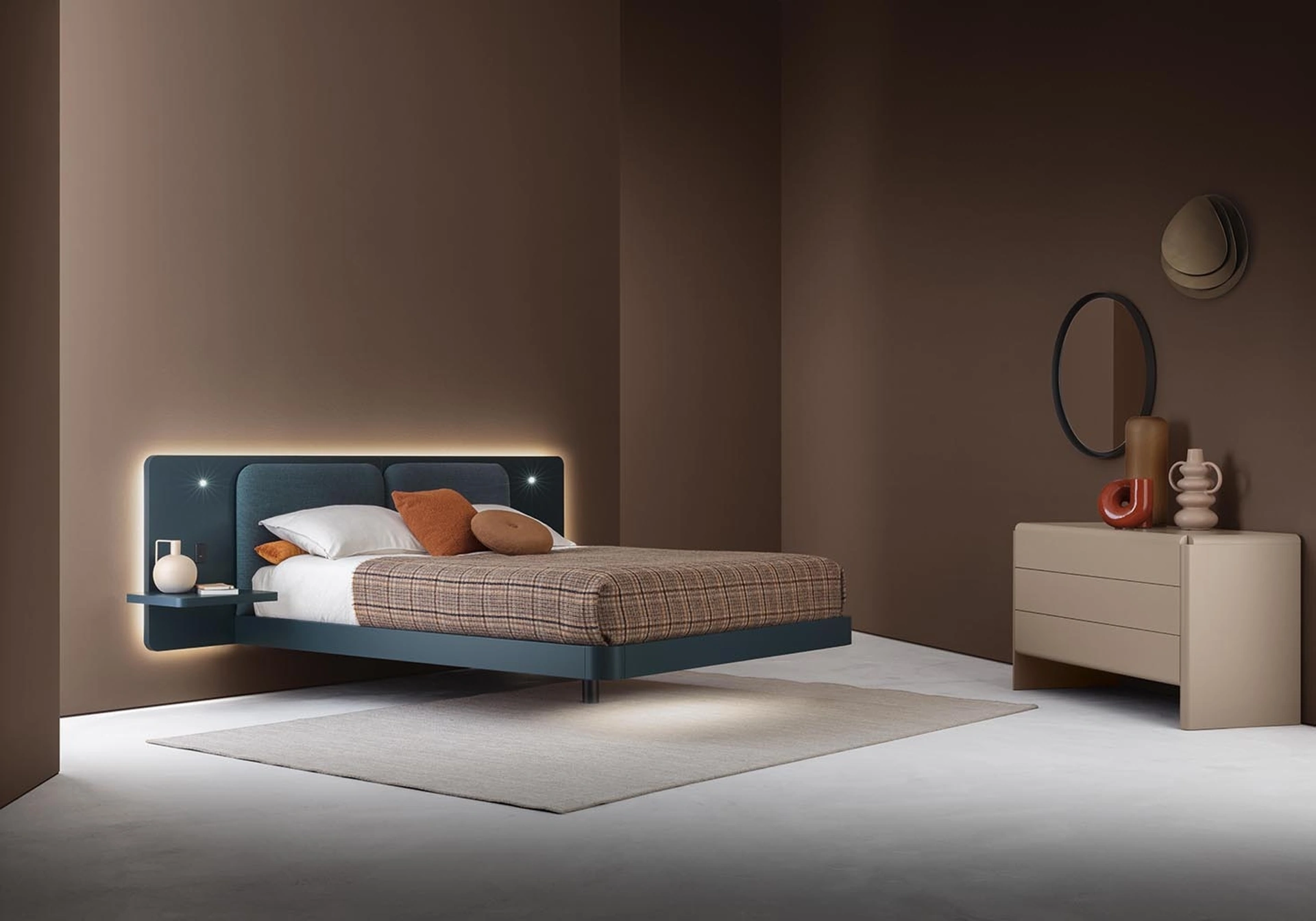 Il letto Grand Voile di Alf DaFrè presenta un design innovativo con struttura sospesa, fissata a parete e supportata da un unico punto centrale, offrendo un'estetica di raffinata leggerezza. La testiera, integrata come boiserie, e la pediera sono progettate per l'integrazione di illuminazione LED, creando ambienti sofisticati. La personalizzazione è ampia, con opzioni per cuscini imbottiti sulla testiera e una ricca selezione di materiali, tra cui i tessuti Alf DaFrè, ecopelle e pelle. Funzionalità aggiuntive come mensole, illuminazione orientabile e prese USB sono integrabili, massimizzando l'utilità e il comfort. Questo prodotto è un investimento a lungo termine, progettato per garantire durabilità e mantenere il suo stile distintivo nel tempo.