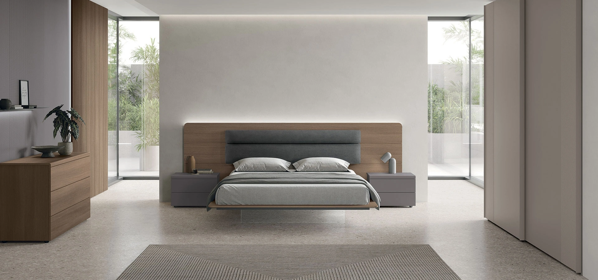 Se vuoi letti matrimoniali con testiera, eccoti il modello Leonardo in melaminico per impreziosire la camera da letto.