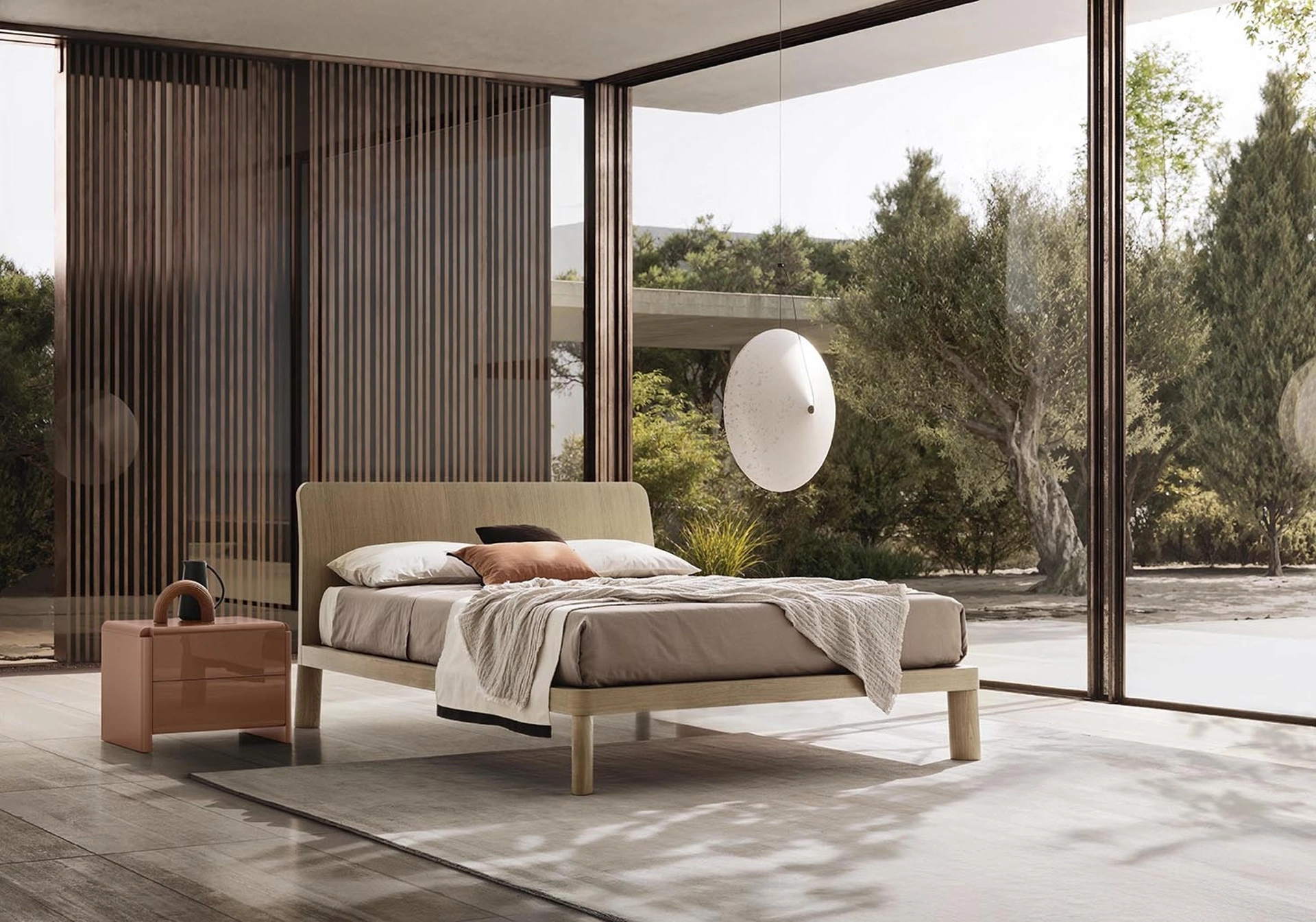 Il letto Paal di Alf Da Frè incarna un design minimalista e raffinato, con una struttura interamente in legno che ne esalta la leggerezza strutturale. La distintiva testiera curvata si integra armoniosamente con le gambe sagomate in legno massello, un dettaglio costruttivo che rivela una giunzione a vista di pregevole fattura. Questo modello offre un'ampia gamma di personalizzazioni grazie alla disponibilità di diverse finiture Fashion Wood e laccate, consentendo oltre 160 combinazioni uniche per adattarsi a ogni stile. Le sue linee pulite e i materiali di alta qualità garantiscono durabilità e un'estetica senza tempo. Questo prodotto rappresenta una soluzione d'arredo che coniuga con maestria stile contemporaneo e funzionalità intrinseca, assicurando un'integrazione ottimale in ambienti moderni.