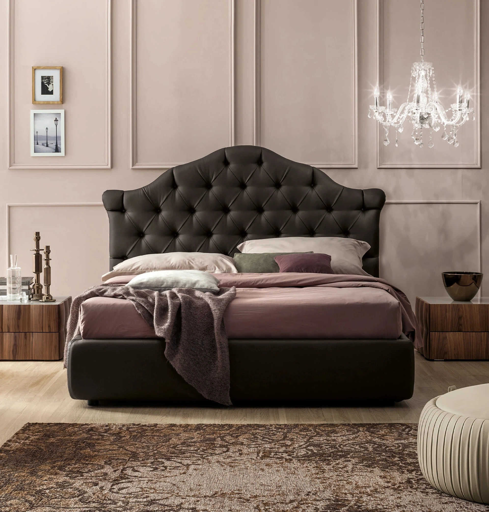 Il letto Veneziano di Tonin Casa incarna un design ispirato alla magnificenza storica di Venezia, evidente nella sua testiera che evoca le architetture palaziali. Caratteristica distintiva è la raffinata esecuzione artigianale con tecnica Chesterfield, che conferisce un'estetica capitonné di grande pregio e sofisticazione. Un anello decorativo, o 'ring', integra armoniosamente la struttura, esaltando l'imponente presenza della testiera. Questo pezzo d'arredo è concepito per offrire un'esperienza di riposo superiore, combinando estetica e funzionalità avanzate. La progettazione attenta ai dettagli e la scelta di componenti di prim'ordine garantiscono un prodotto all'avanguardia per comfort e resistenza.