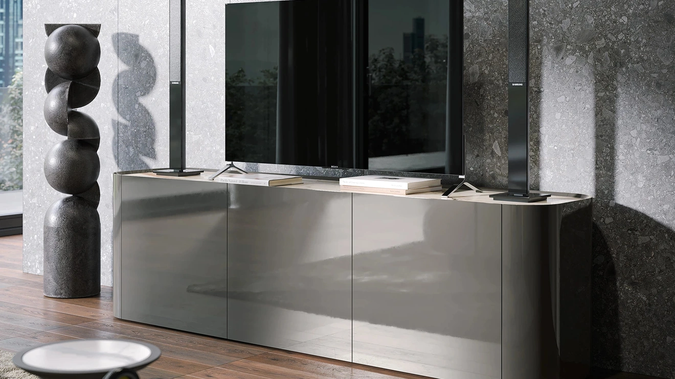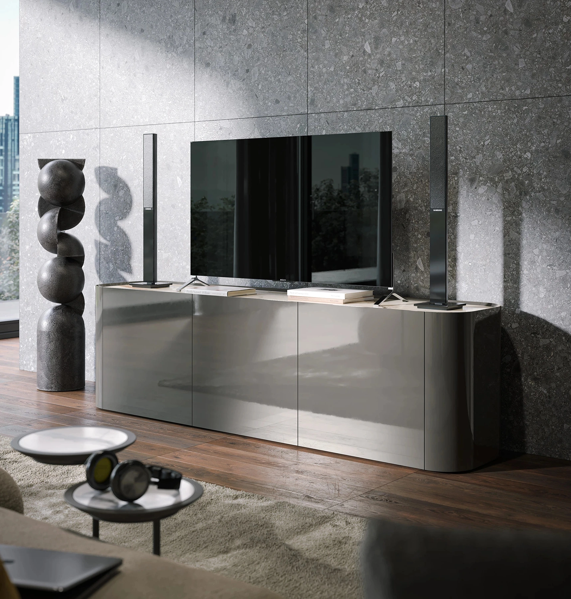 Clicca e ottieni informazioni! Madia Clyde porta TV di Tonin Casa in laccato lucido: ti sta aspettando per impreziosire le tue stanze moderne.