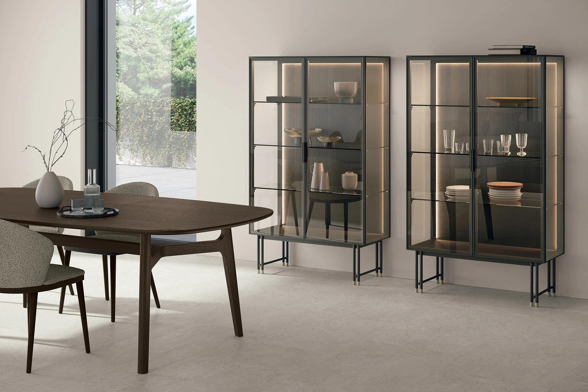 | Materiale: | metallo antracite 160, vetro fumè 363, materico traccia rovere moka |