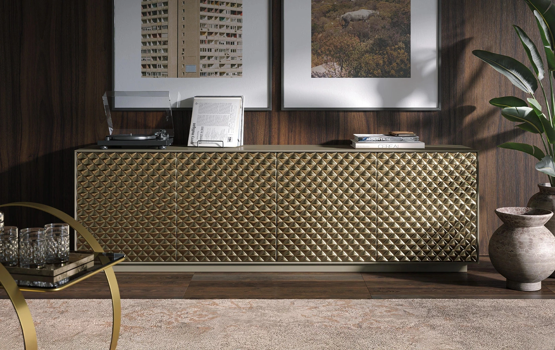 Scopri la Madia Luce di Tonin Casa, ora disponibile nel nostro showroom Mobili Riccelli S.r.l. a Rho. Questo pezzo d'arredo, ideale per chi cerca un tocco di eleganza sofisticata, si caratterizza per la sua struttura in legno laccato e le ante in vetro a specchio con motivi geometrici. Un design esclusivo che crea giochi di luce e riflessi, donando profondità e un'atmosfera ricercata al tuo living. Ti invitiamo a toccare con mano la qualità e ammirare dal vivo la Madia Luce, un'esclusiva che arricchirà ogni ambiente.