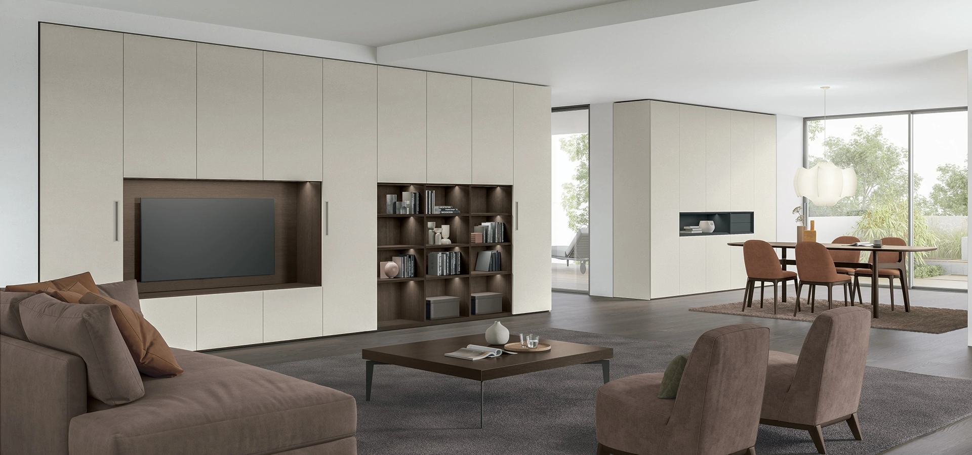 Vieni a scoprire la versatilità e l'eleganza della soluzione Logica Plus UNIT 01, ora disponibile per essere ammirata e configurata presso il nostro showroom Mobili Riccelli S.r.l. a Rho. Questa innovativa proposta per la zona giorno unisce armoniosamente spazi relax e dining, grazie a un sistema di armadiature modulari progettato per massimizzare il contenimento e integrare funzioni aggiuntive. Il design prevede una nicchia dedicata alla TV e una libreria nell'area living, mentre nella zona pranzo una nicchia strategica alleggerisce visivamente i volumi. Le finiture impiegate, come il materico Argilla Naturale e il laccato Bromo 176 per la nicchia Vogue con cassetti, riflettono l'attenzione ai dettagli e alla qualità. Un vero pezzo di design che ti aspetta per essere esplorato e personalizzato, garantendo soluzioni su misura per ogni esigenza abitativa.
