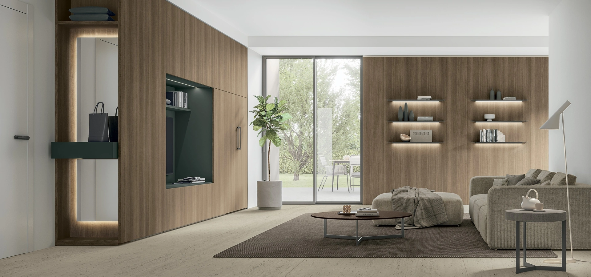 Pareti attrezzate e pensili Tomasella: clicca e scopri il modello Logica Plus UNIT 02 e potrai impreziosire stanze moderne di ogni tipo.