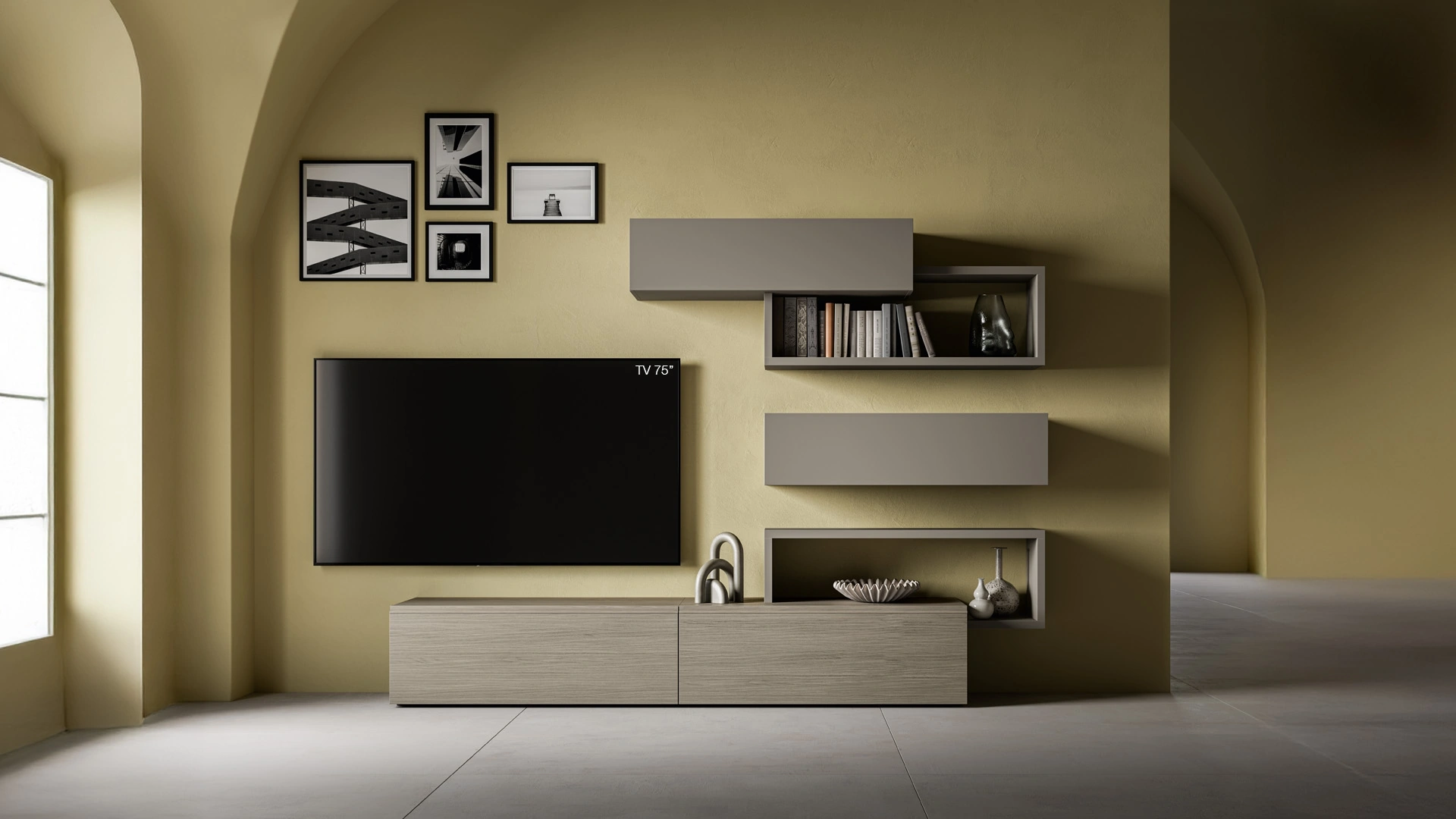 La composizione soggiorno Pratico PTG407, firmata SantaLucia, incarna un'estetica contemporanea unita a una funzionalità evoluta. Progettata per ottimizzare lo spazio nella zona giorno, questa soluzione si distingue per la sua configurazione versatile e le sue capacità salvaspazio. Integra elementi pratici come capienti cestoni, pensili con apertura vasistas e moduli libreria personalizzabili, garantendo un'organizzazione impeccabile e una perfetta adattabilità agli ambienti moderni. La vasta gamma di finiture disponibili, tra cui le sofisticate tonalità Matwood Honey, Eco Avorio, Eco Corallo, Matwood Silk, Clay Dark, Eco Muschio e Matwood Grey, permette un'elevata personalizzazione estetica, adattandosi a diversi stili d'arredo con coerenza e pregio. Questo sistema d'arredo è concepito per garantire durabilità e prestazioni estetiche nel tempo, rispondendo a rigorosi standard qualitativi per un investimento duraturo nell'ambiente domestico.