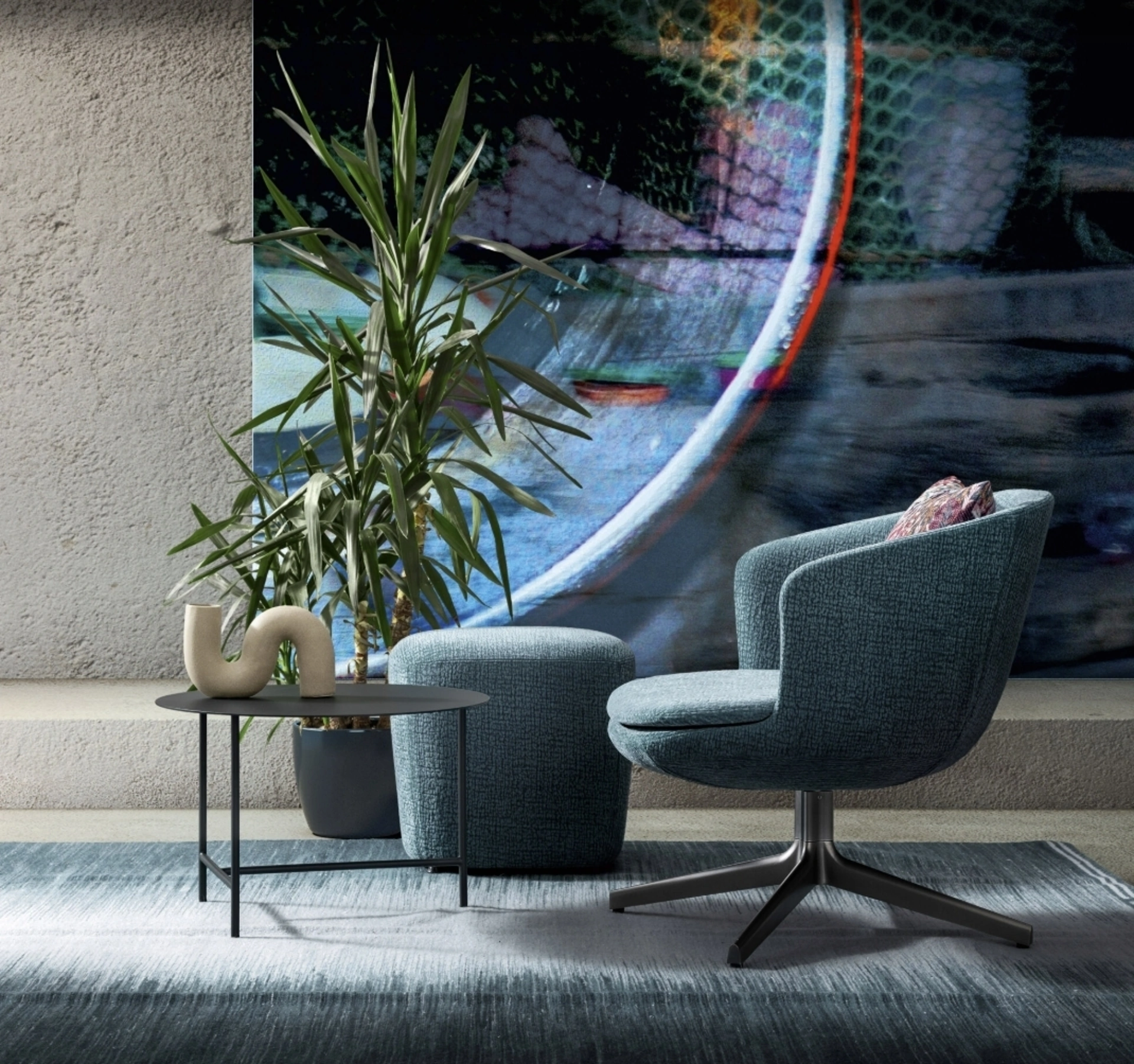 | Materiali: | Struttura interna in metallo annegato in poliuretano ignifugo stampato a freddo; imbottitura in poliuretano espanso indeformabile (densità 60 kg/m³); rivestimento in tessuto, ecopelle o pelle (non sfoderabile). |