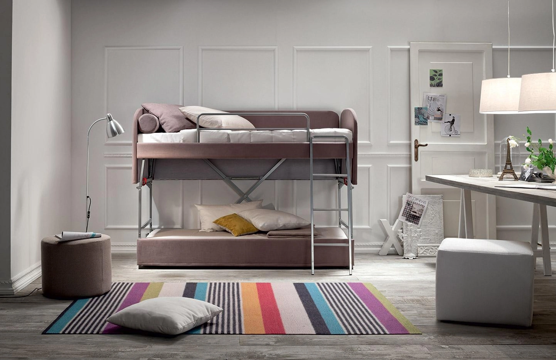 Scopri l'esclusivo divano letto ELLEN - Divano letto sdoppiabile in vellutino di Felis, ora disponibile presso il nostro showroom Mobili Riccelli S.r.l. a Rho. Questo modello incarna linee classiche e tondeggianti, perfette per ogni ambiente. La sua innovativa funzionalità di trasformazione in letto a castello, senza occupare spazio extra, lo rende una soluzione d'arredo intelligente e pratica. Potrai apprezzarne la configurabilità e toccare con mano i rivestimenti in vellutino o altri tessuti di alta qualità, tutti sfoderabili e con confortevole imbottitura in poliuretano. Il pacchetto include scaletta, protezione anticaduta, materassi e cuscini, garantendo una soluzione completa. Visita Mobili Riccelli S.r.l. per una consulenza personalizzata e per esplorare tutte le varianti. Siamo il tuo partner d'arredo ideale, con pluriennale esperienza al servizio di chi cerca qualità e innovazione nella provincia di Rho.