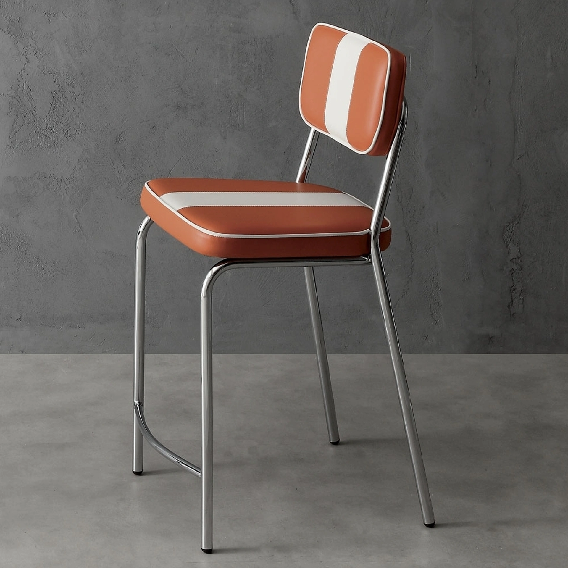 L'Hollywood Stool 75 di La Seggiola si distingue per la sua configurazione versatile, offerta sia in variante monocromatica con rivestimento in ecopelle, disponibile in diverse tonalità vivaci (arancio, blu, verde, giallo, rosso, bianco con profilo nero, nero con cuciture bianche), sia nella versione SPRINT bicolore. La robusta struttura portante è realizzata in metallo cromato, conferendo stabilità e un'estetica moderna. Questo sgabello rappresenta una soluzione d'arredo che combina un'estetica raffinata con materiali selezionati per durabilità e funzionalità. Questo prodotto incarna una sintesi ottimale tra estetica funzionale e selezione accurata dei componenti, garantendo prestazioni e durabilità nel tempo.
