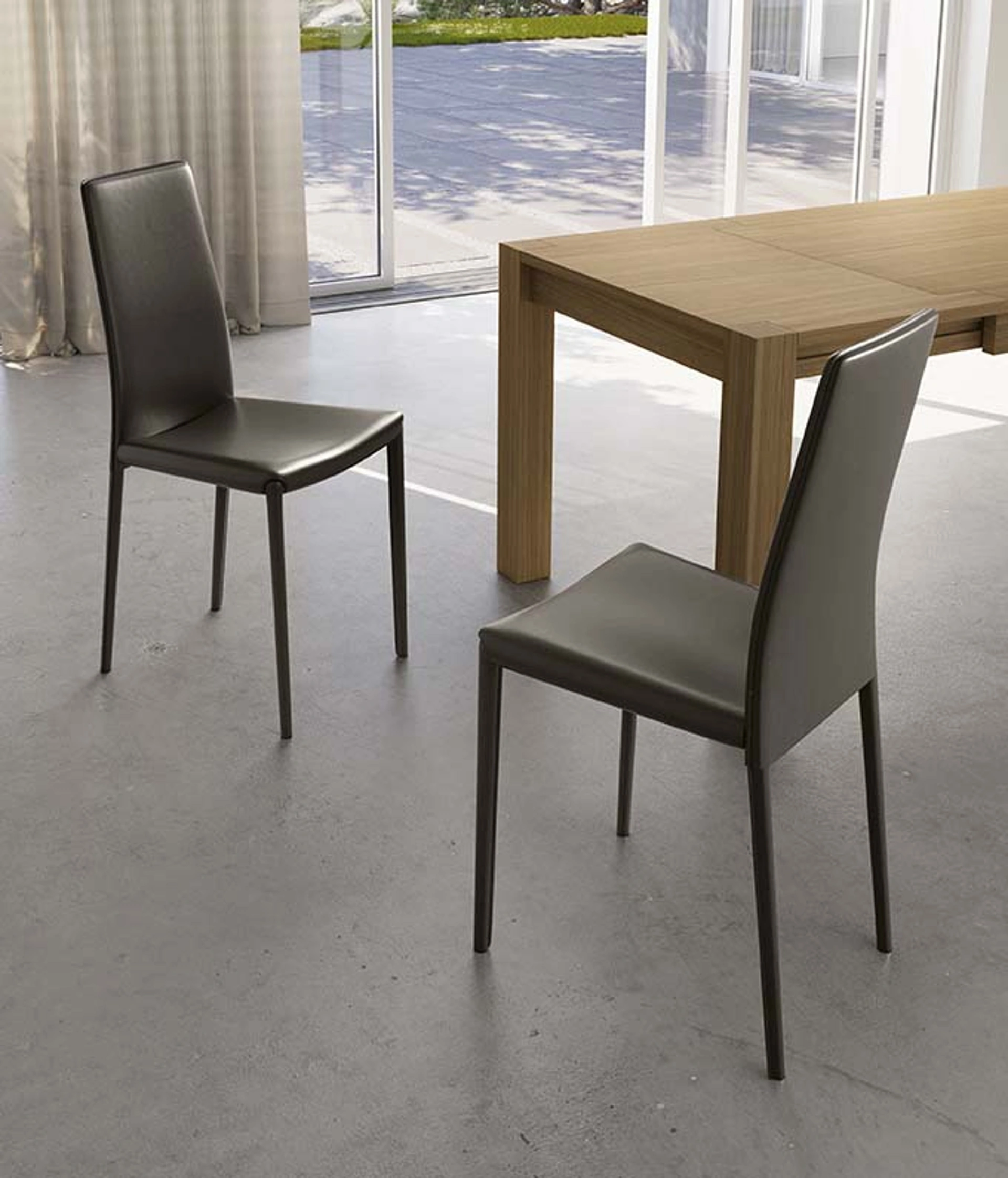 Con questa sedia Kitty Stones in cuoio, una tra le nostre sedute impilabili moderne, potrai completare i tuoi spazi.