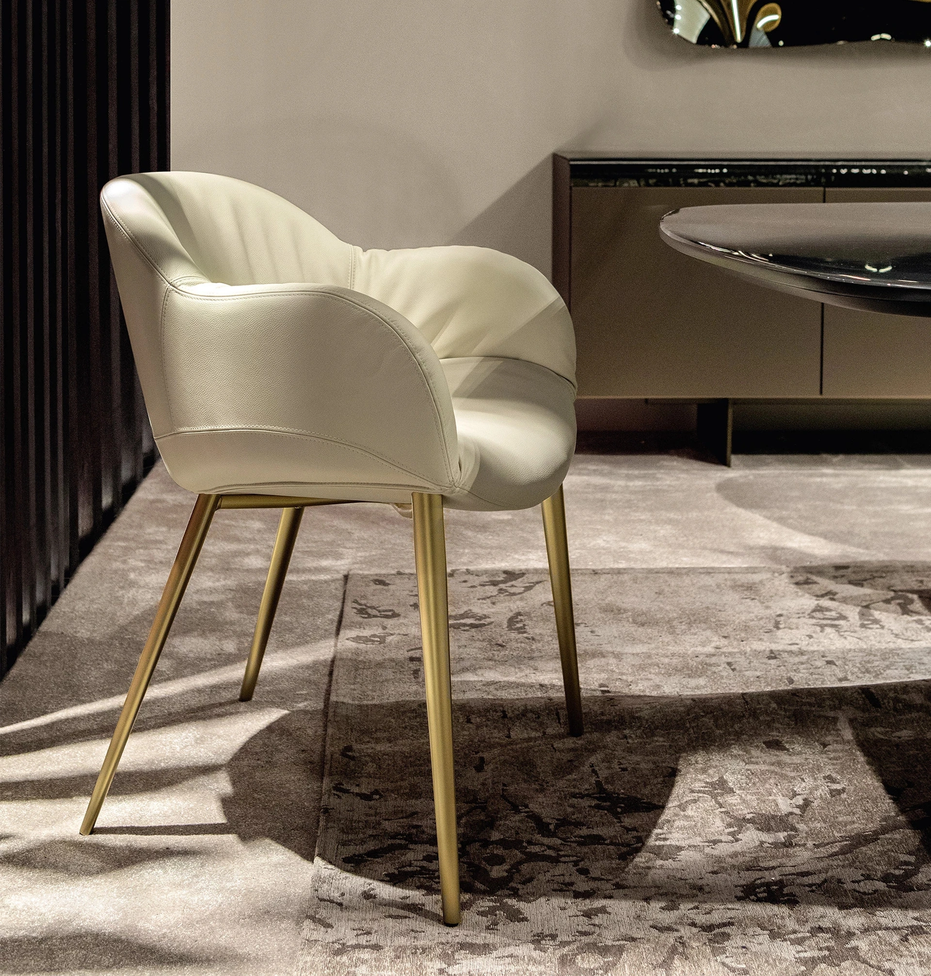 Le sedute design, sia in legno che imbottite, sono mobili complessi, caratterizzati da una gamma quasi infinita di tonalità, linee e pattern. Tra le migliori marche disponibili nel nostro negozio di Arredamento Casa potrai trovare le Sedie fisse da pranzo più originali in commercio. Contattaci e ottieni informazioni sul modello di Sedia in pelle imbottita Olympia di Tonin Casa mostrato in foto. Nel nostro punto vendita proponiamo esclusivi mobili e oggetti accessori, tra cui troverai certamente la soluzione che fa per te. Una sedia in pelle come quella qui visibile arreda un living o una zona cucina di grande design, ultimando gli spazi valorizzandoli appieno.