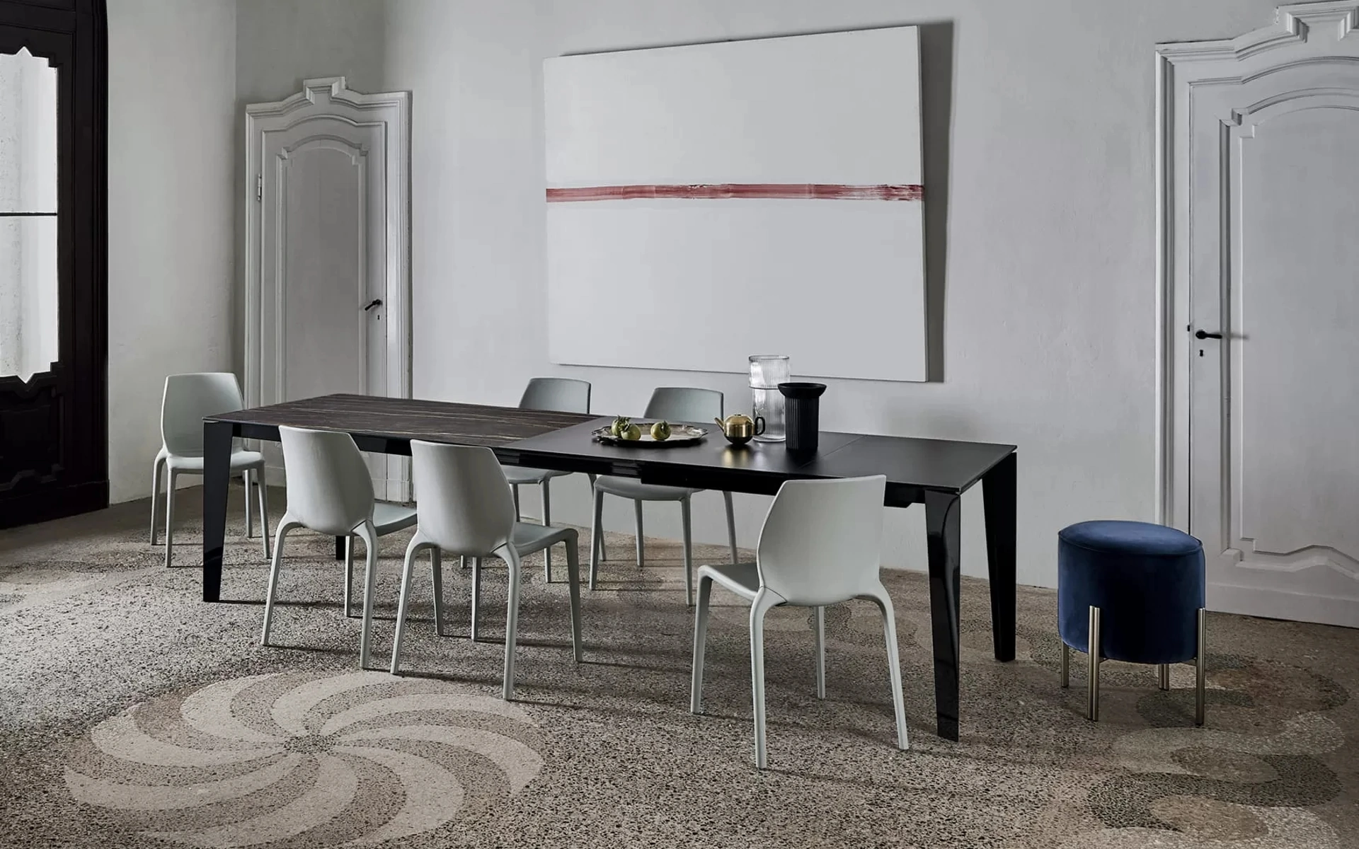 Se cerchi tavoli allungabili moderni, ecco a te il modello da pranzo in gres Cruz XXL della firma Bontempi.