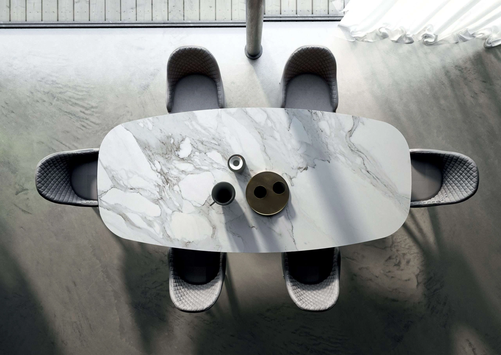 Il tavolo Fil8 Fisso di Ozzio è caratterizzato da un piano in ceramica. Questo materiale è rinomato per la sua elevata resistenza a graffi e calore, oltre che per la facilità di pulizia, garantendo durabilità nel tempo.