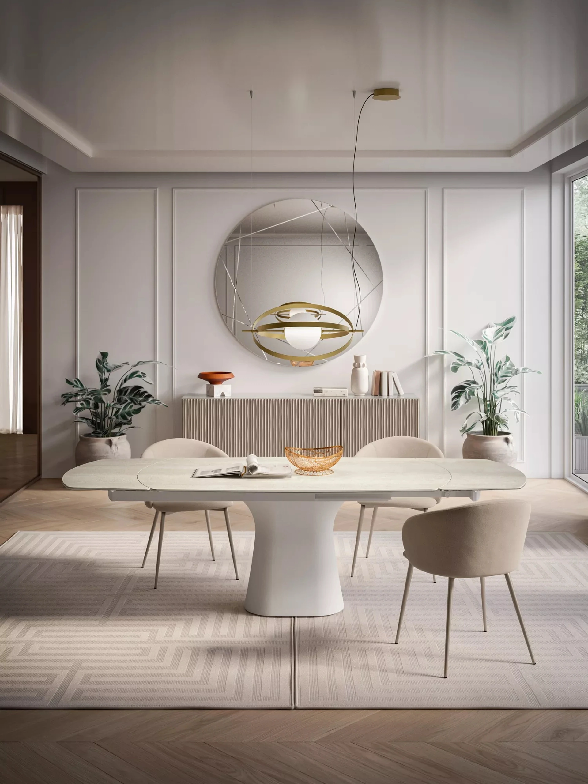 Vuoi avere ulteriori info sul tavolo da pranzo Podium Allungabile di Bontempi? Clicca e scopri di più sui modelli allungabili dell'azienda.