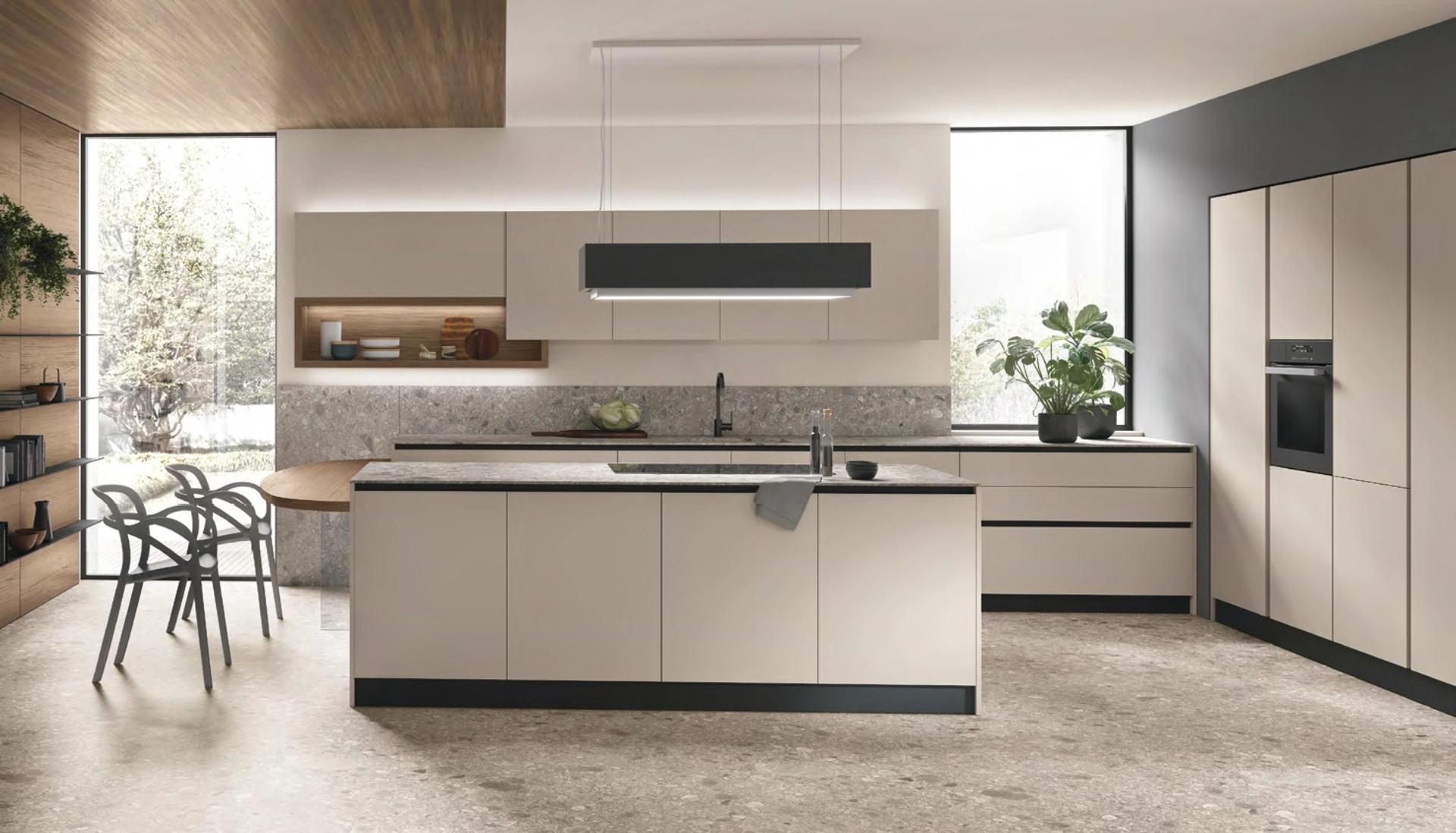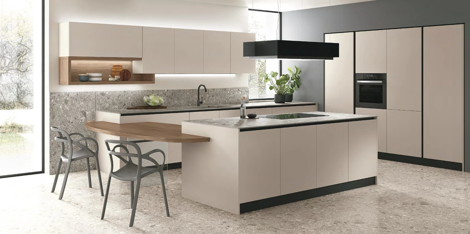 Clicca e scopri un mondo di Cucine Moderne con penisola: la cucina Infinity Modern 06 Stosa in Pet ti attende!